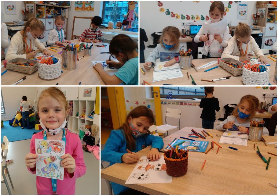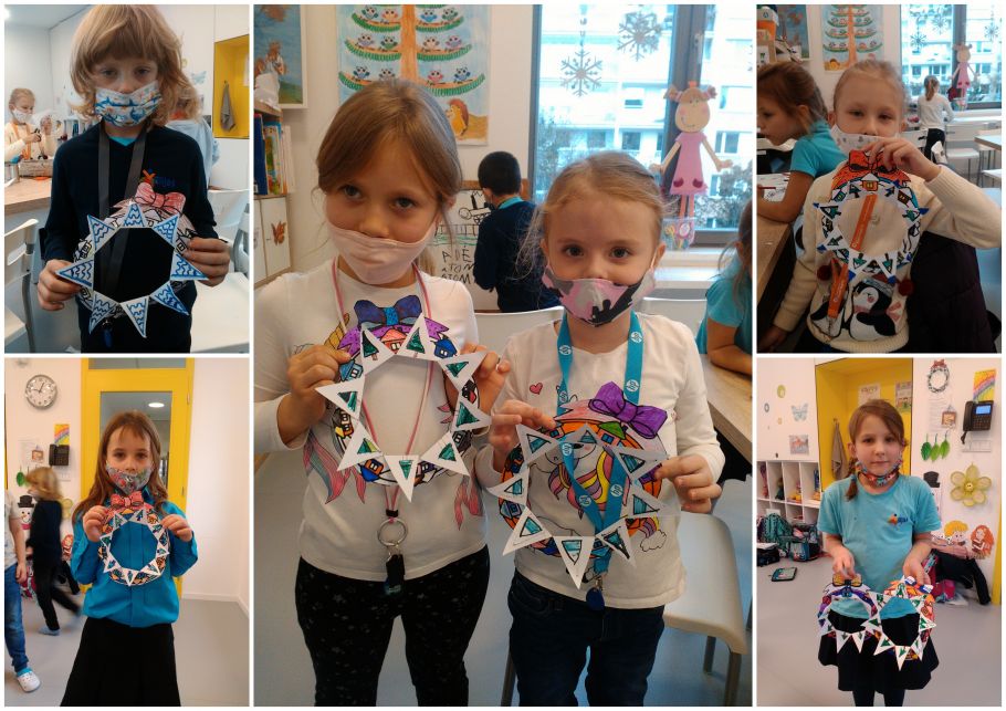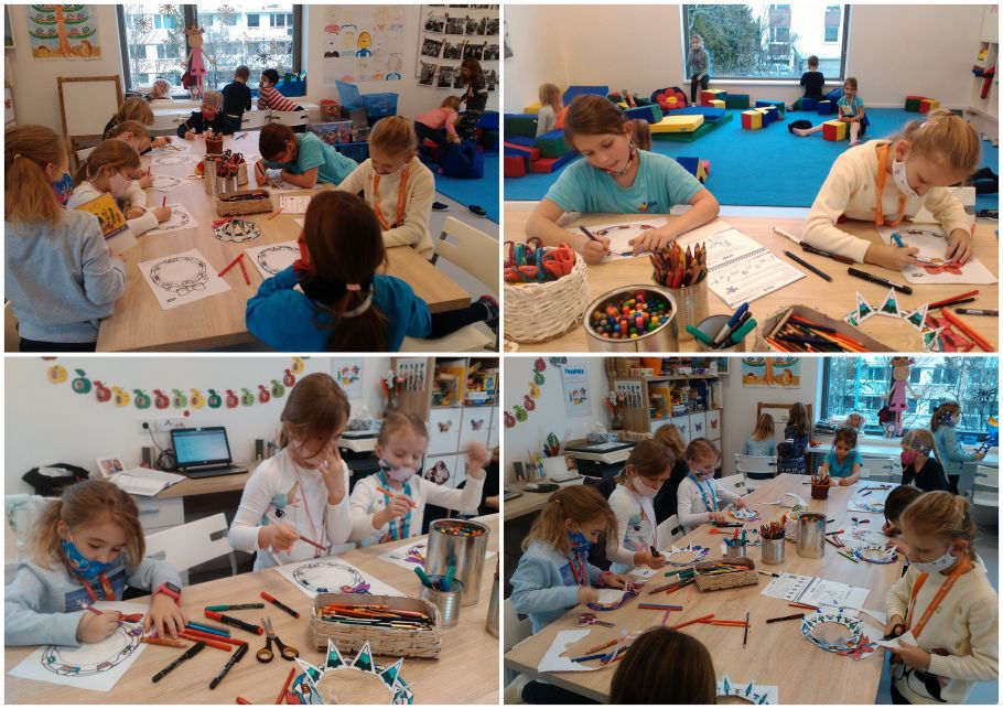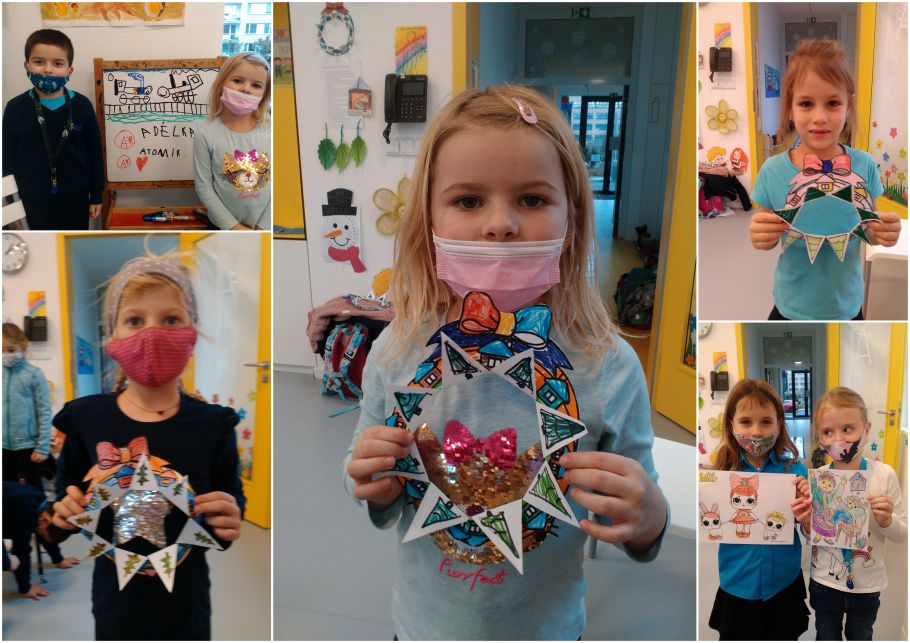 Dnes jsme si vyrobili zajímavý adventní věnec. Nejdříve jsme si ho vybarvili, pak jsme ho nastříhali, vybarvili stromečky a bylo hotovo. Děti dostaly krásný adventní kalendář plný různého čtení, her, tajenek a omalovánek. Tak jsme si v něm listovali a plnili jednotlivé úkoly. Četli jsme si statě z příběhů, které se k jednotlivým úkolům psaly. Byli jsme se projít venku a nadýchat čerstvého vzduchu.