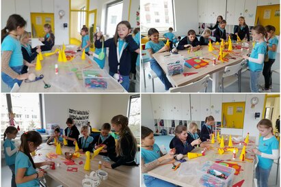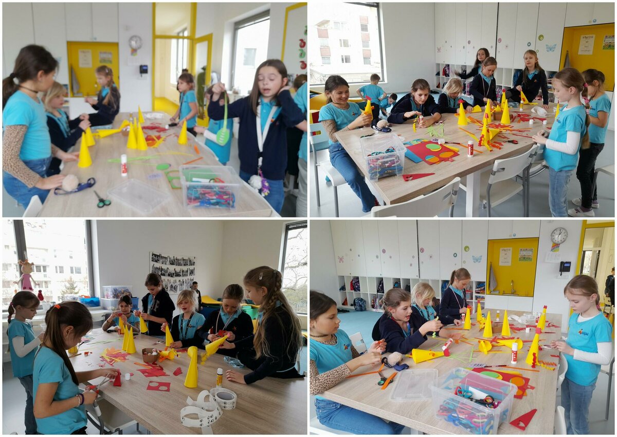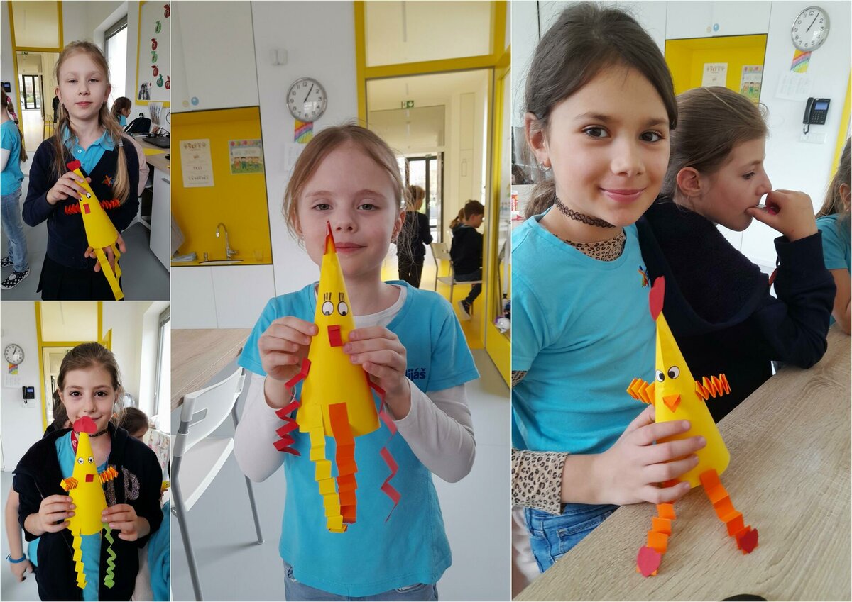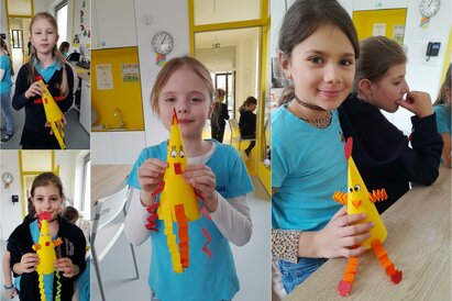 Beránek a slepička byli další naše práce, které jsme koncem týdne s dětmi ve družině vyrobili. Naše velká velikonoční nástěnka se tak zaplnila dalšími výrobky a tak to máme tady moc krásné. Svátky jara jsou v plném proudu. Tento týden budeme ještě olepovat velikonoční vajíčka, tak se mají děti na co těšit. Každodenní pobyt na čerstvém vzduchu, pohybové hry, kroužky a povídání, to jsou už pravidelné aktivity, které děláme a děti je mají velice rády.