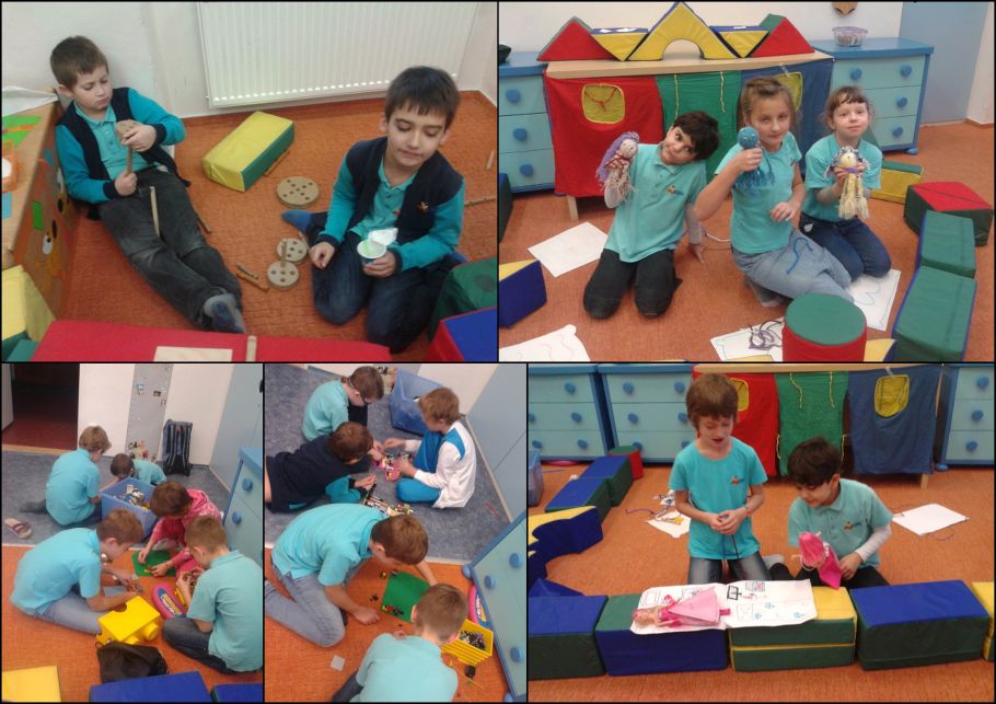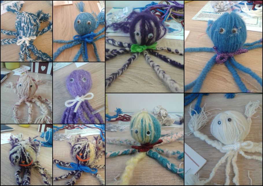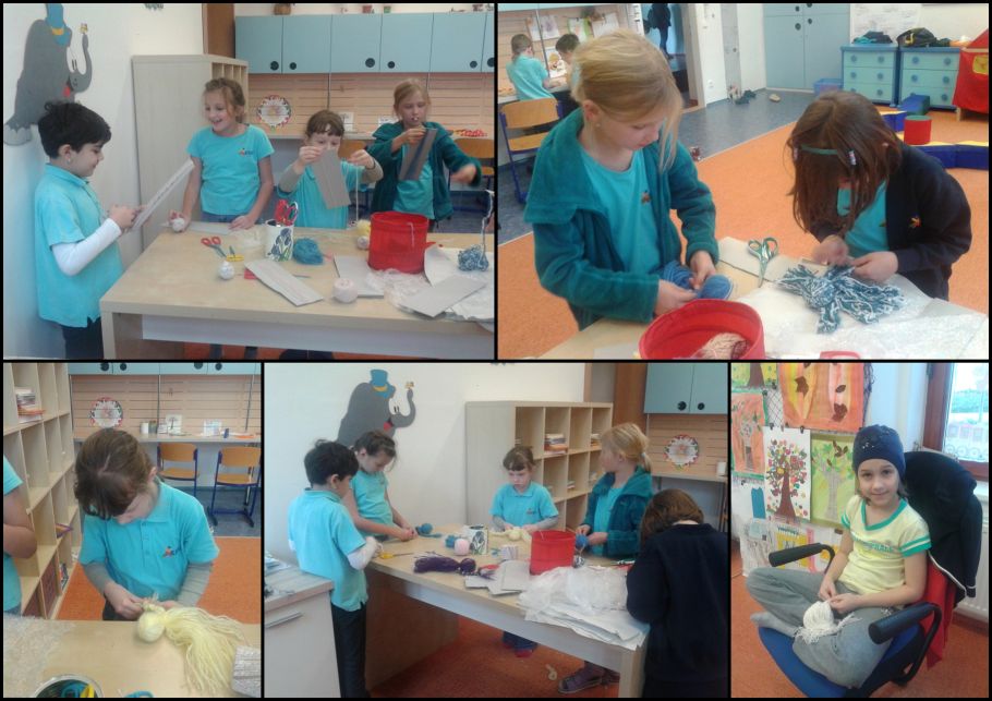 Dnes jsme pracovali s vlnou. Vyrobili jsme si chobotničku. Musím říct, že to chtělo hodně trpělivosti, ale děvčata to  hravě zvládly.  Vyrobily pro chobotničky domečky, postýlky a hráli si.