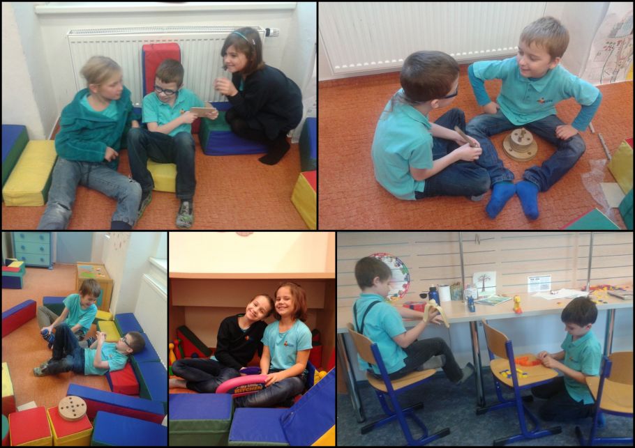 Kluci stavěli  lego nebo domino, hráli karty Bang nebo  jiné hry s kostkami.