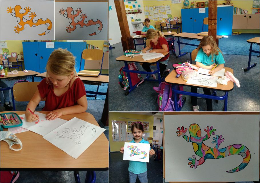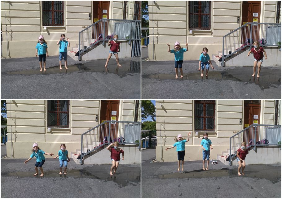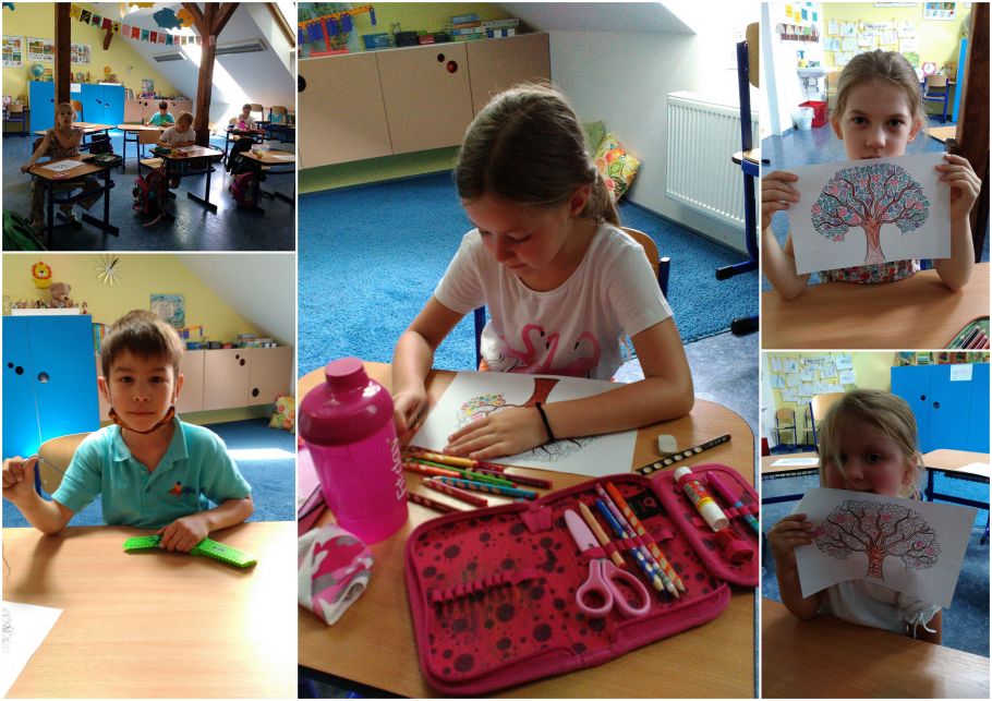 Včera byl Den dětí. Kromě sladkého překvapení, které děti dostaly, tak si to v plné míře užily venku, kde běhaly po vodě sem a tam, tam a sem. Ve družině jsme si namalovali měnícího chameleona a stromeček, tančili jsme na různé písničky, které si děti vybraly. Také jsme zpívali a pak jsme si užívali hry s míčem. Měli jsme co pozorovat, děti sbírali různé broučky, nosily je ve dlaních, chystaly jim domečky, honily se po dvoře a u toho se prostě bavily.