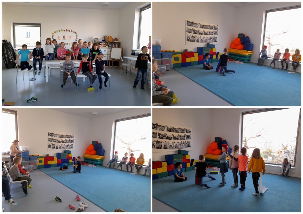 Měsíc knihy jsme ukončili v pátek nácvikem divadla od Františka Hrubína O ŘEPĚ. Děti se s chutí pustily do hraní a krásně jim to šlo. Divadlo jsme pak hráli pro starěí a mladší děti ve školní druřžině. Vyráběli jsme také barevné myšky a jelikož jsme měli hodně energie dostali jsme od paní vychovatelky list papíru, kde jsme měli hledat jednotlivé postavy. Bylo to velice vtipné a hezké. Děti se rozběhly po celé družině a hledali kdo má nohu 36, nebo bydlí v Praze 5 atp. Každý den chodíme také ven, abychom posilnili svou imunitu a vybili energii.