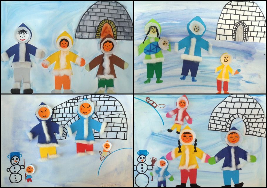 Je tady prosinec, poslední měsíc tohoto roku. S dětmi očekáváme zimní nadílku, ale zatím nic. Ještě, že existuje dětská fantazie. Tam není ničeho málo, ani zimy ne. Dnes jsme si vyrobili eskymáckou rodinku. Trochu jsme malovali vodovkami, vystřihovali, lepili a zase malovali. Podívejte se sami. Nejsou krásné?