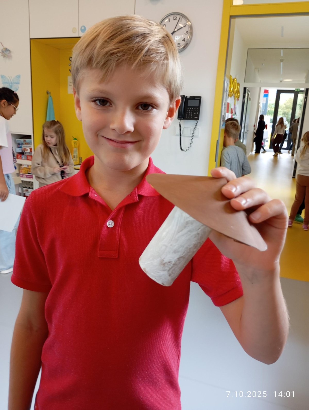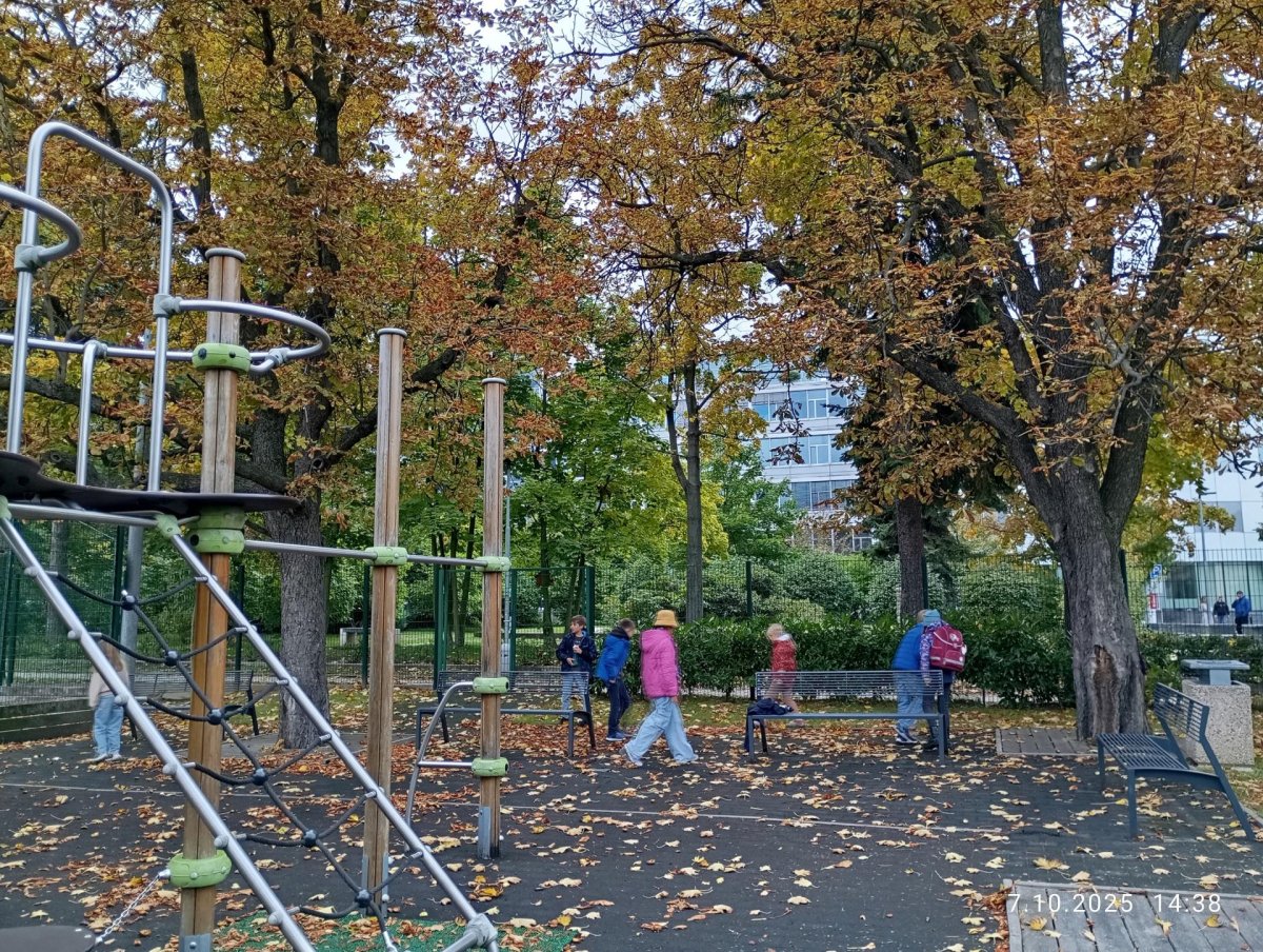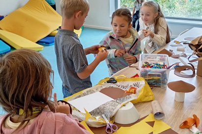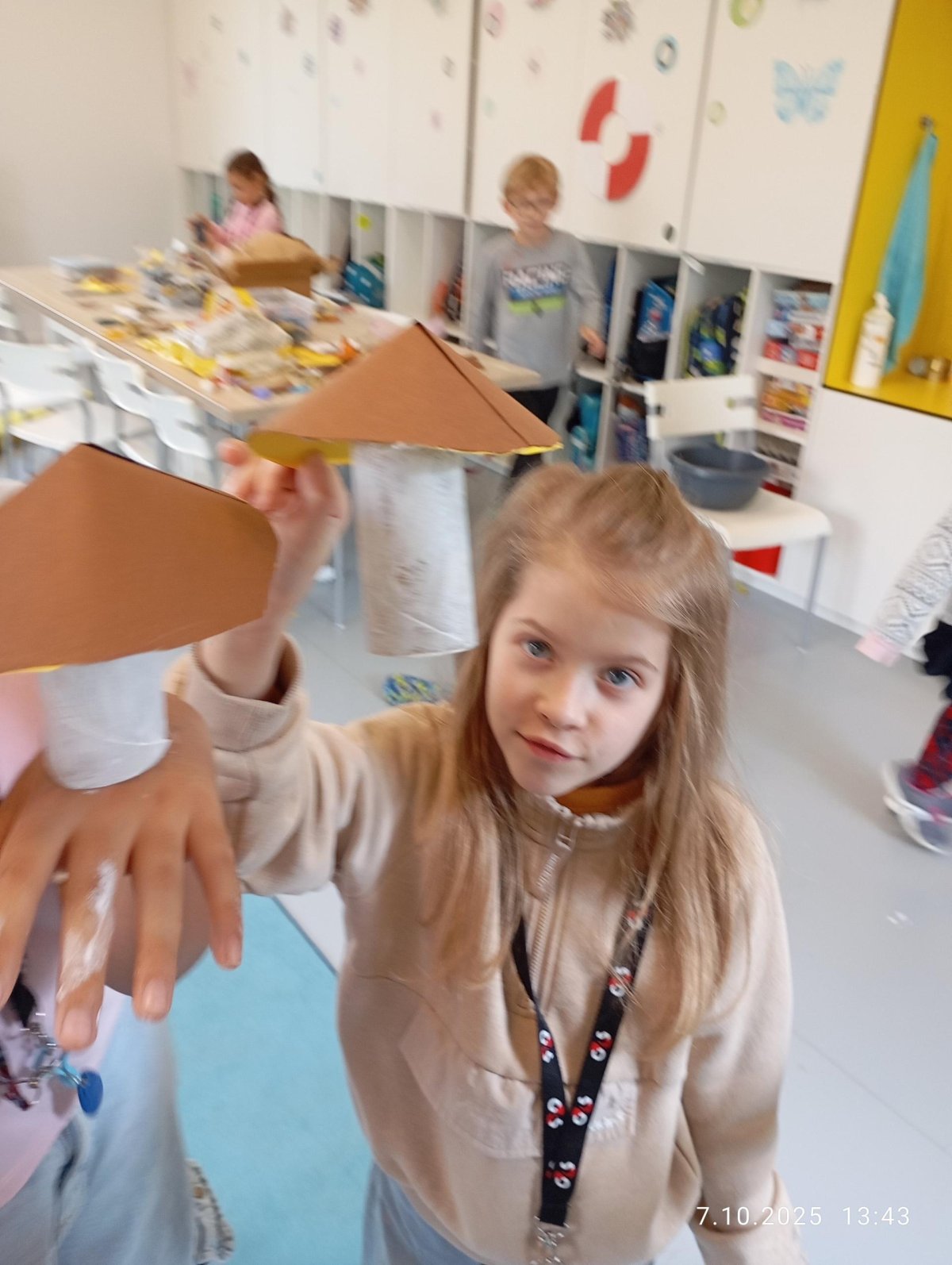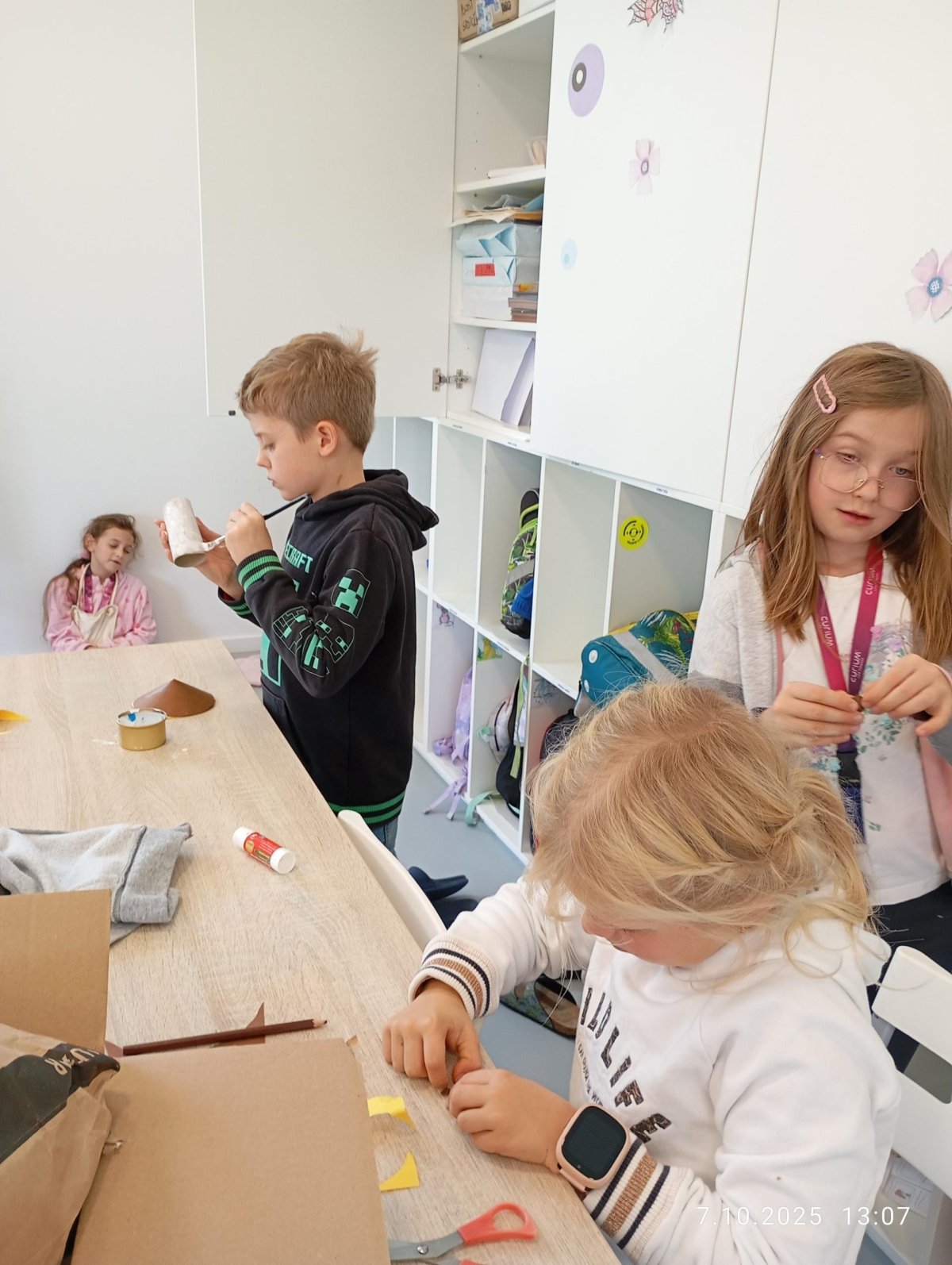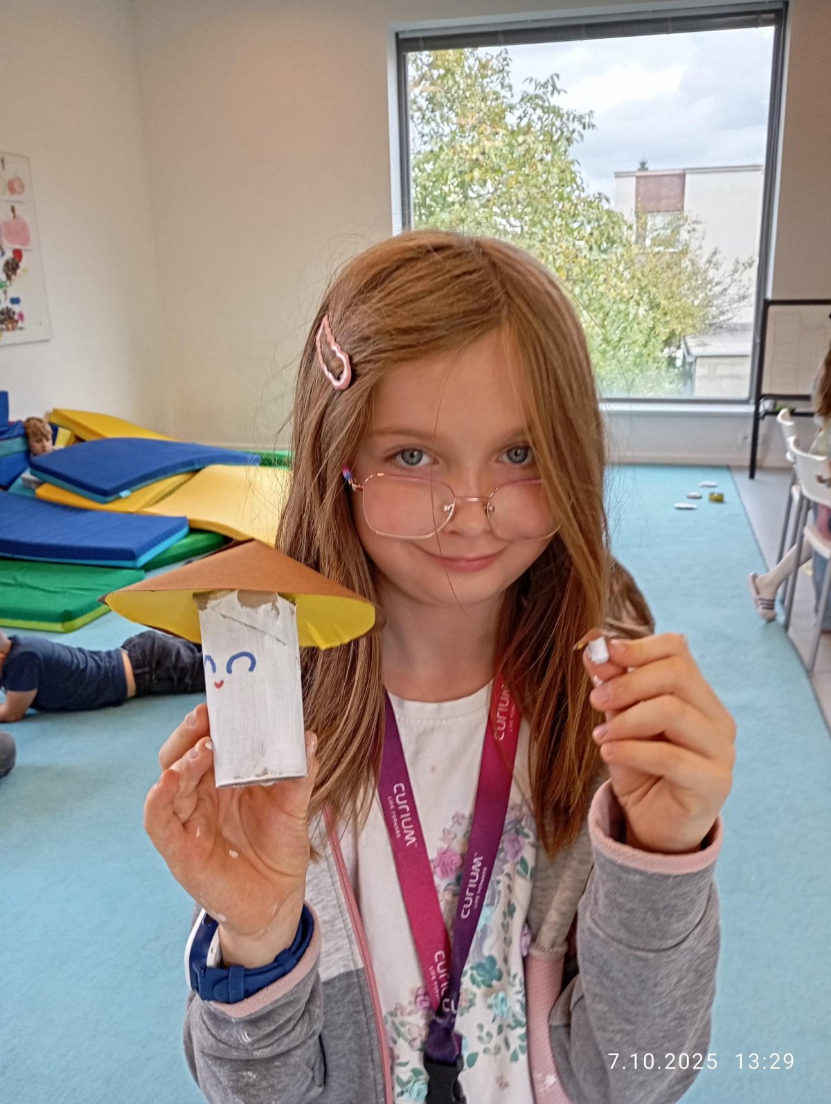 Když jsme u těch hub, vyrobili jsme včera i hříbky. Tentokrát v 3D provedení. Vystříhly jsme kruhy, ze kterých vznikl po nastřižení a opětovném slepení klobouk, pak byl potřeba menší kroužek na ze žlutého papíru a spodek a nohu nám pomohly nahradit ruličky wc papíru. Prostorově ztvárnit houbu není jednoduché, ale děti si s tím poradily, trochu pomohla paní učitelka a trochu tavná pistole, a hřibky byly na světě. Samosebou, někteří dali přednost autíčkům, legu a magnetické stavebnici. venku si to pak užívali všichni, vydali jsme se totiž na hřiště u školy na kaštánky, pokusíme se vypěstovat sazenčky a třeba i zasadíme stromky.