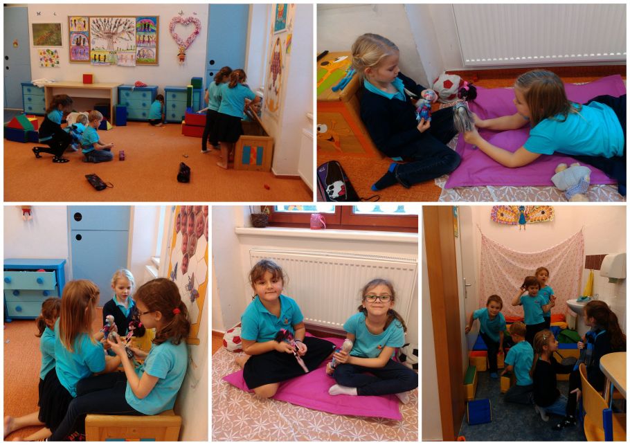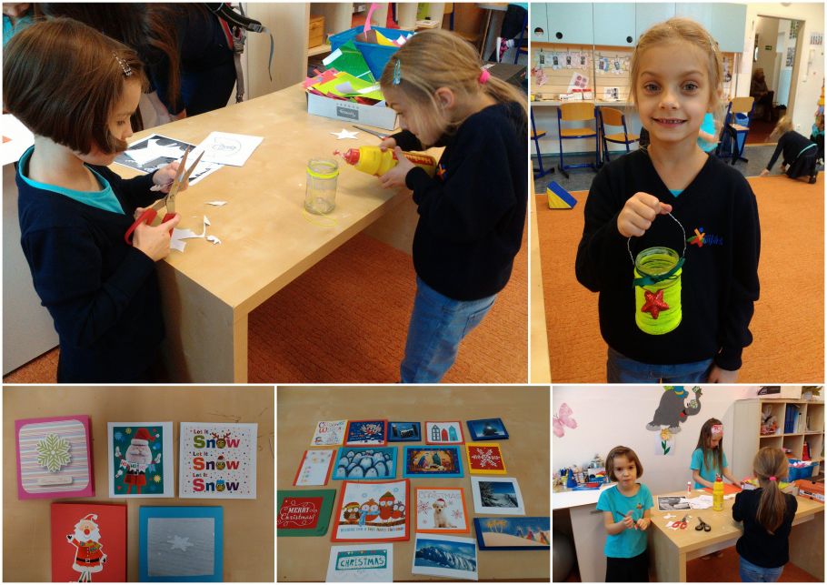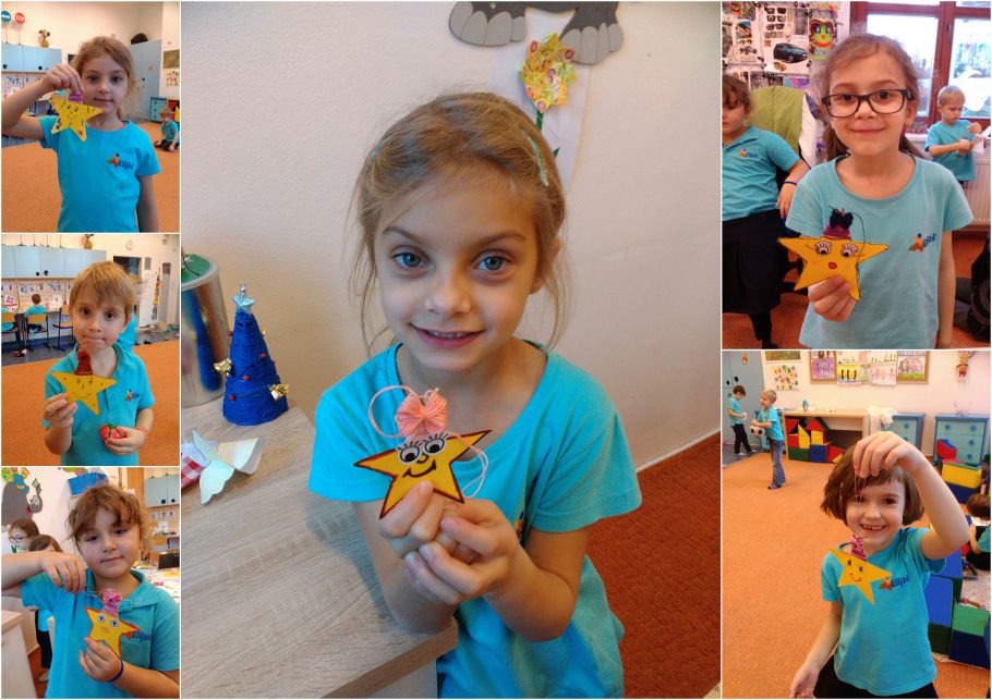 Dnes a včera jsme vyráběli na vánoční jarmark. Včera to byli přáníčka a dnes zase hvězdičky. Obě teto aktivity si vyžadovaly hodně trpělivosti, ale její výsledek je hezký. Kromě řízené činnosti jsme měli kroužky, děti si spolu hrály a byli jsme ven v hale vybít energii.