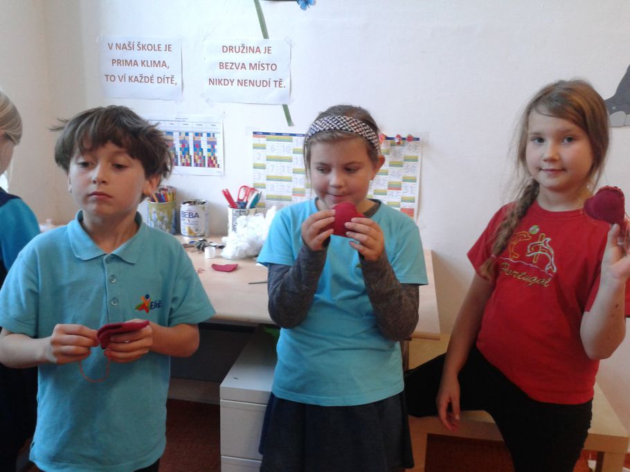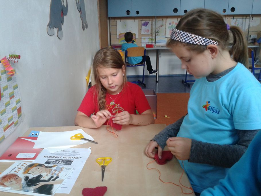 Dnešní odpoledne jsme si četli další kapitolu z knížky: „ Děti a jejich přátelé.“ Následně na to jsme vyráběli jehelníček. Učili jsme se pracovat s jehlou a nití. Děti byly  nadšené a tak si rovnou vyrobily dva. Po skončení jsme  uklidili družinu a udělali úkoly.