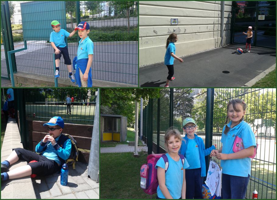 Dnes jsme si v družině přečetli pohádku, postavili hradby z kostek a pak jsme vyrazili na plácek za školou. Zdolávali jsme trasu poslepu, malovali křídami na asfalt, dělali koláže z klacíků a jiných přírodních materiálů a malovali kamínky. Děvčata si udělala domeček a kluci vytvořili potůček, který naplnili vodou. Mezi naší hrou proběhl kroužek tenisu a malování na kamínky, co děti hodně bavilo. Dětem se domů ani nechtělo. Den ve družině byl pro nás krátký, ani jsme všechno nestihli udělat.