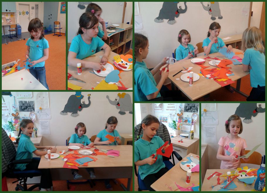 Dnes bylo venku zase ošklivo, zůstali jsme v družině a  vyráběli  veselé klauníky na papírové talířky. Děti se hrály, malovali, stavěly domečky, nebo korálkovaly. Někteří si  napsali domácí úkoly a jiní měli krafmagu. Když nastal čas, uklidili jsme družinu a šli domů.