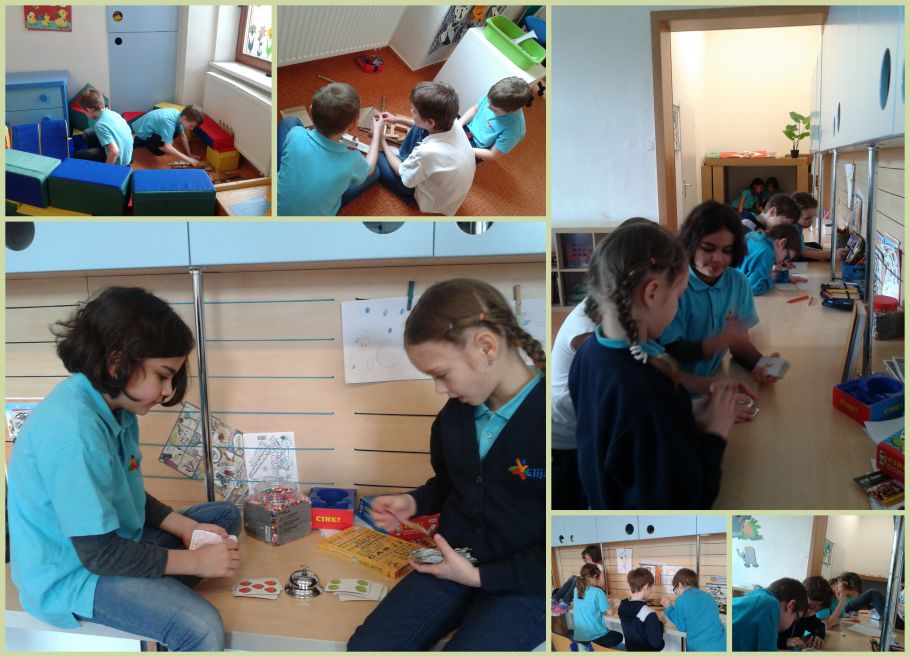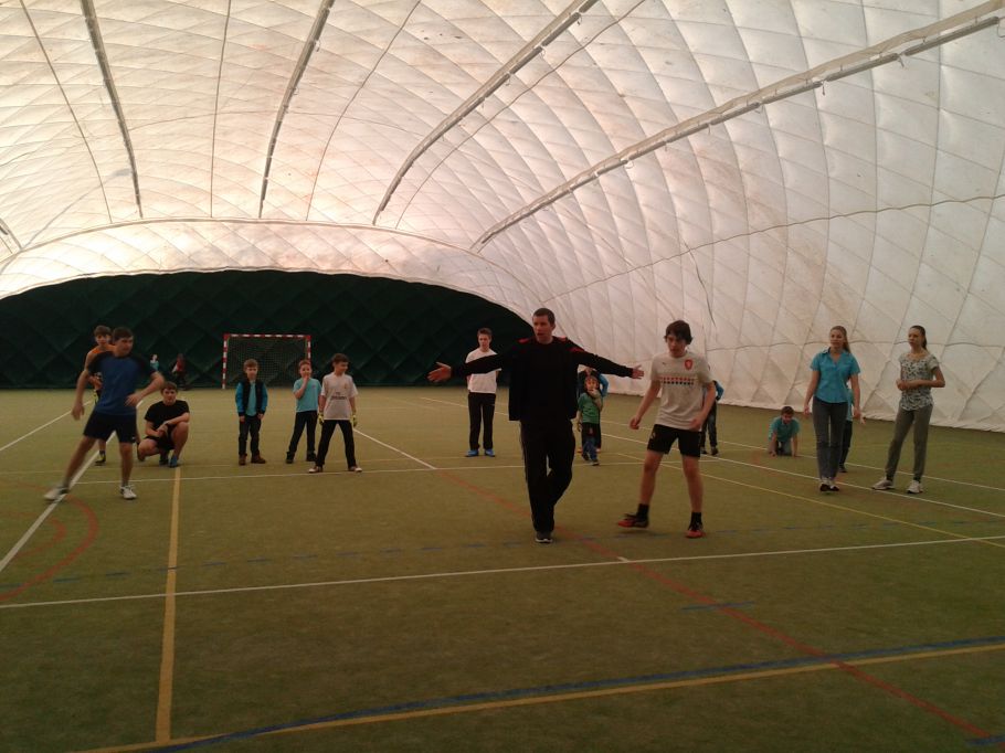 Jinak byla ve družině dobrá nálada, děti  se hrály, měly angličtinu a karate. I když venku foukal silný vítr, v hale bylo příjemne. Byli jsme si tam zahrát vracečku, fotbal a házenou.