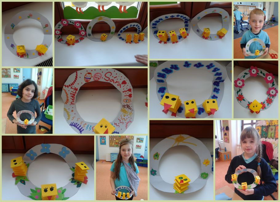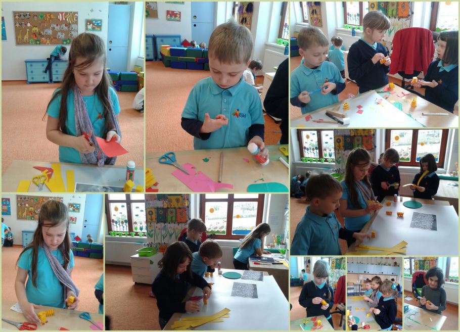 Nový týden jsme začali výrobou kuřátek, zdobením oken a tvořením velké koule na strop.