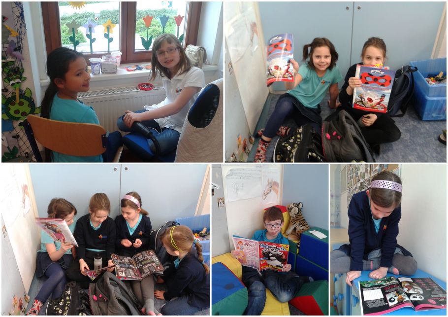 Dnes byl krásný slunečný den a my jsme si ho užili nejenom venku na hřišiti, ale i v družině. Četli jsme časopisy, malovali létající balony, hráli si s kostkami a vyráběli podle libovůle.