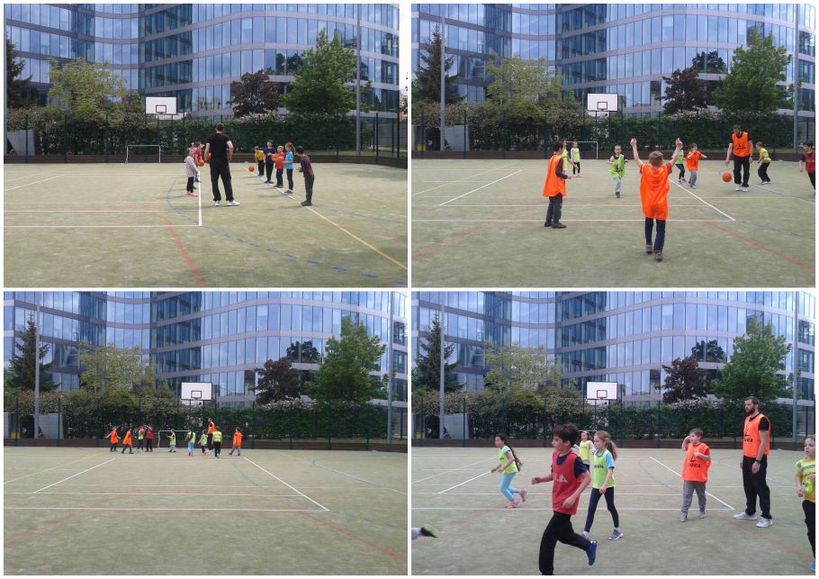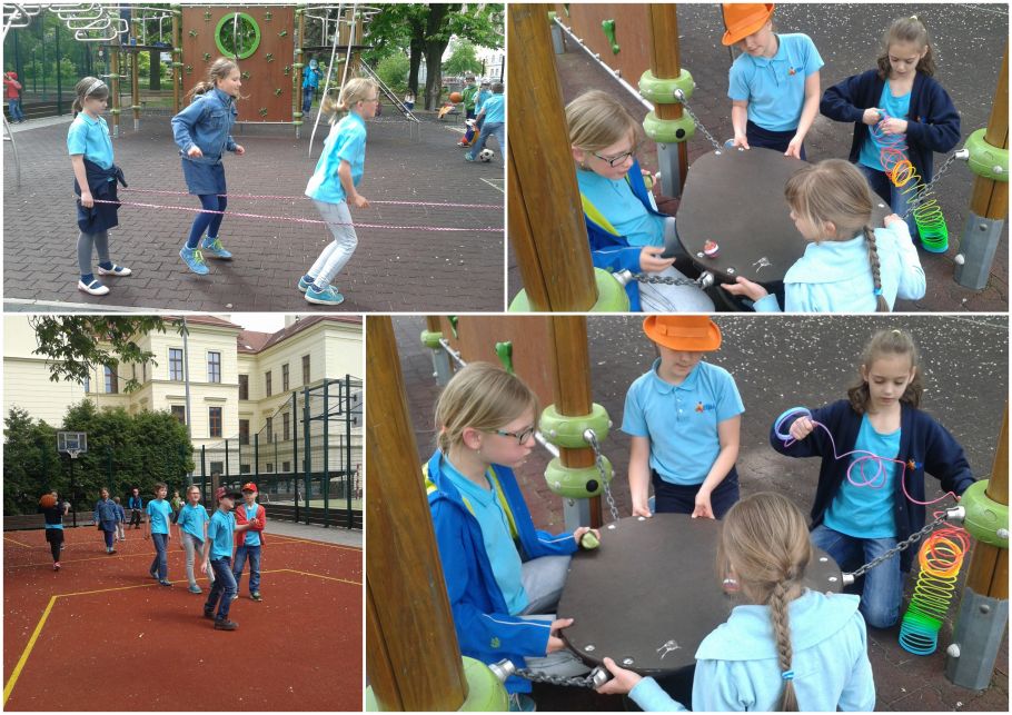 Venku měli děti sportové hry, skákali jsme přes švihadlo a zalíbilo se nám házet míčem na koš. Je úžasné pozorovat kluky, jak běhají za míčem, hrají házenou a jak se jim holky pletou pod nohy. Děti jsou moc zlaté.