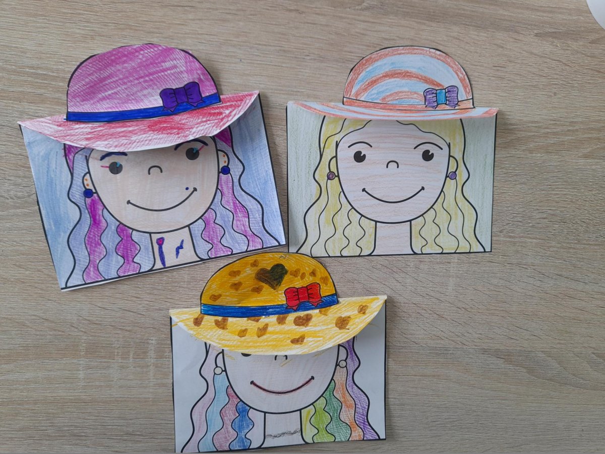 Klobouk je pokrývka hlavy, je propracovanější než čepice a dobře se nosí. Děvčatům moc sluší a proto je rády nosí. A tak jsme si takové klobouky vyrobili i my ve družině. Děvčata si nacvičily taneční kreace a tak jsme měli i vystoupení pro družiny. Každý den se snažíme být venku a hrát si s míčemi, skákat na žiněnkách, hrajeme florbal, fotbal, honíme se a povídáme. Léto je tady, tak užíváme tepla.