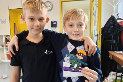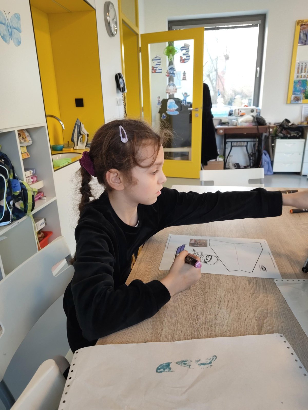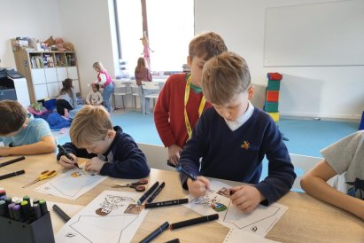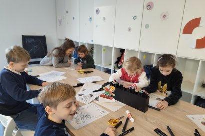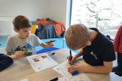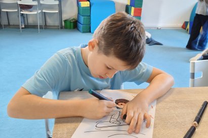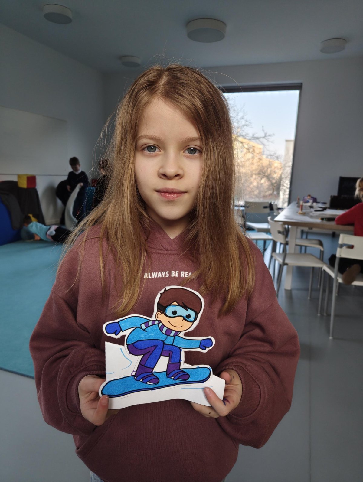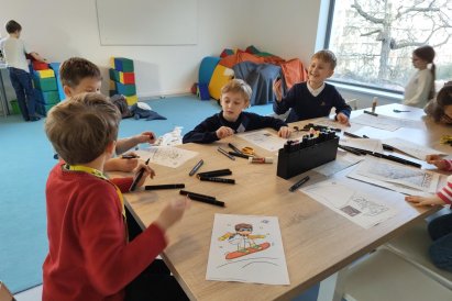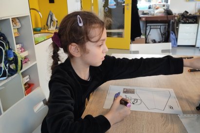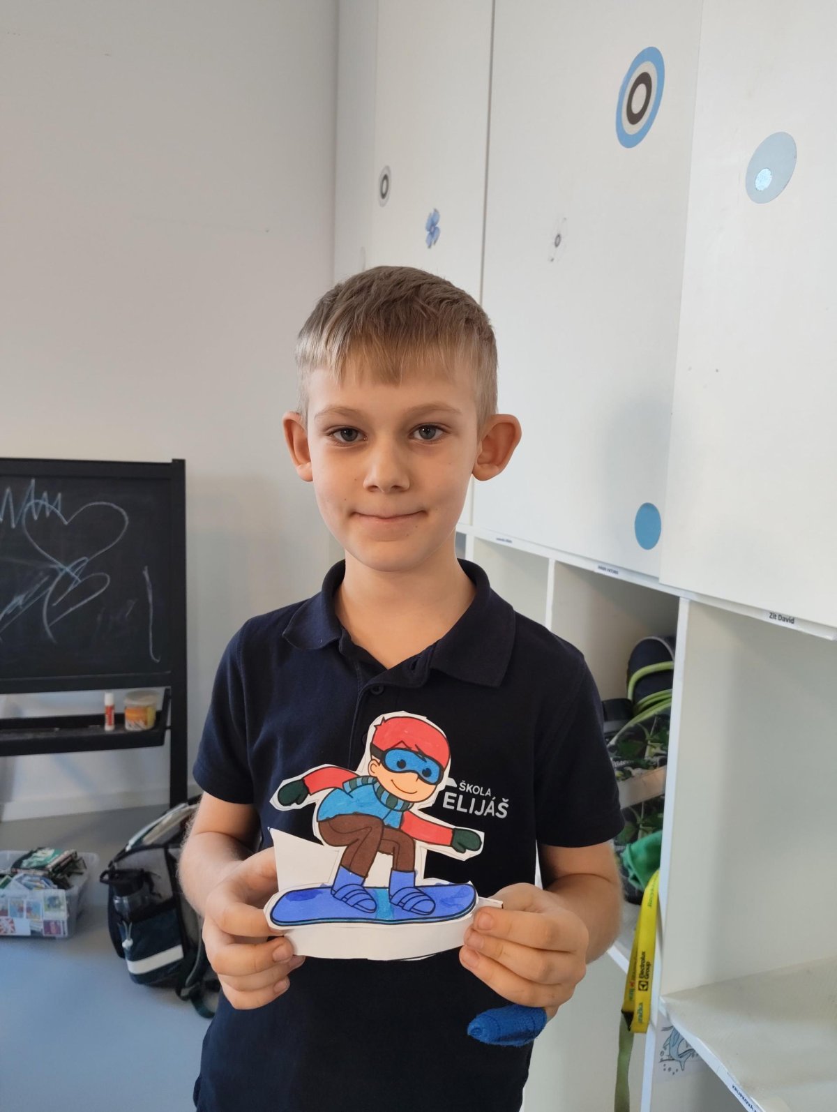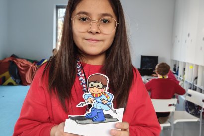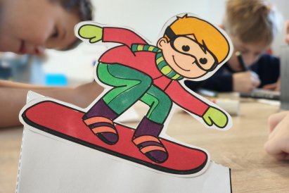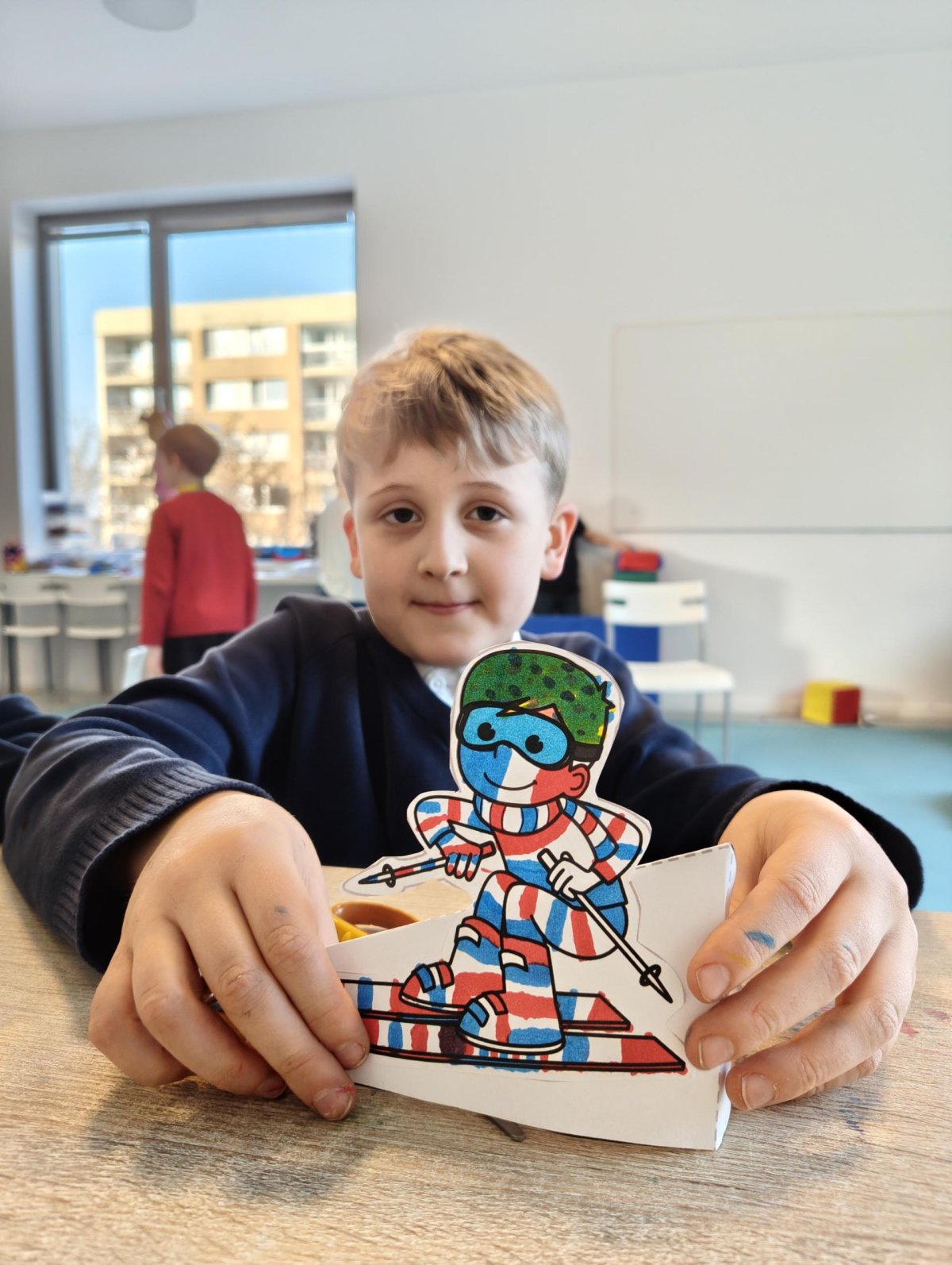 Dnes jsme si ve družině povídali o zimních sportech. Každý vyprávěl, kdo a kde lyžoval, jaké měl zážitky z hor a kdo už lyžovat umí nebo se teprve učí. Mezitím jsme vybarvovali obrázky lyžařů a lepili postavičky na sněhové kopce. Každý měl oblečení lyžaře vybarvené buď podle vlastní fantazie, nebo podle toho, co měl na sobě na horách.