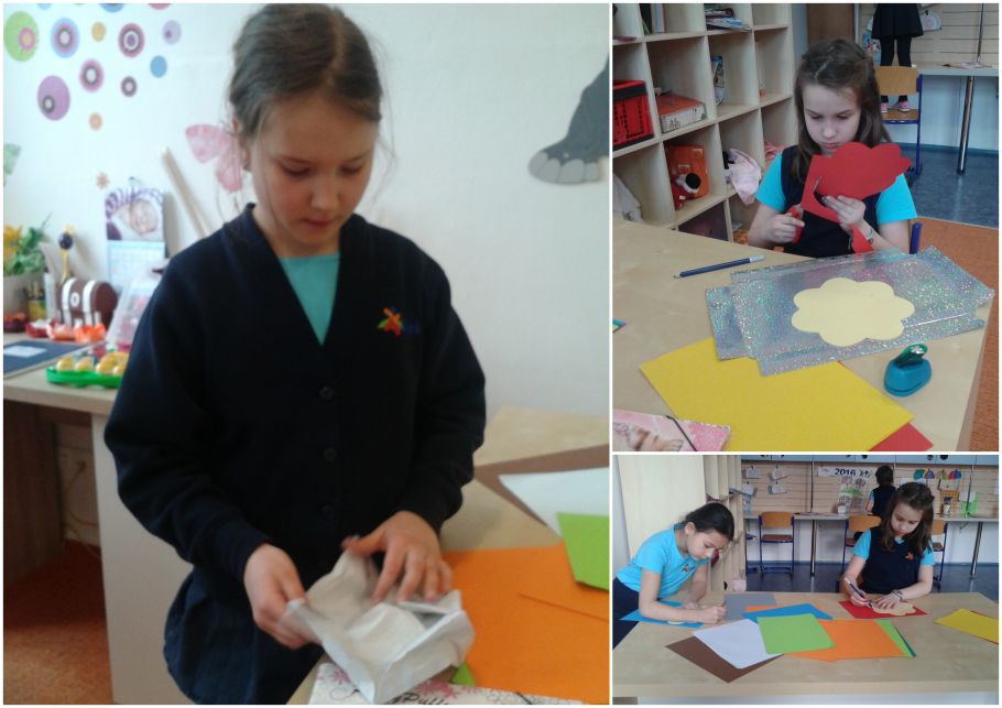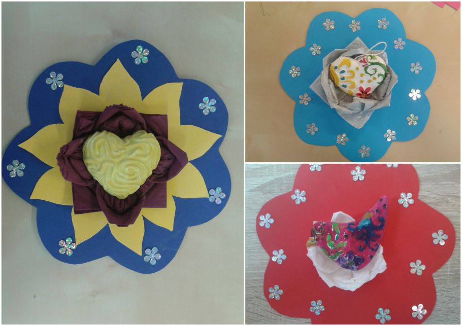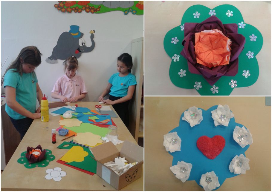 Dnes jsme vyráběli dárek pro naše ženy, maminky, tetičky... Vytvořili jsme kytičku, na kterou jsme položili leknín a ze sádry odlitek různeho tvaru. Dal jsme si záležet. V družině jsme si hráli s legem, míčem, vyšívali kytičky, psali úkoly, povídali si a také jsme vyběhli ven na hřiště.