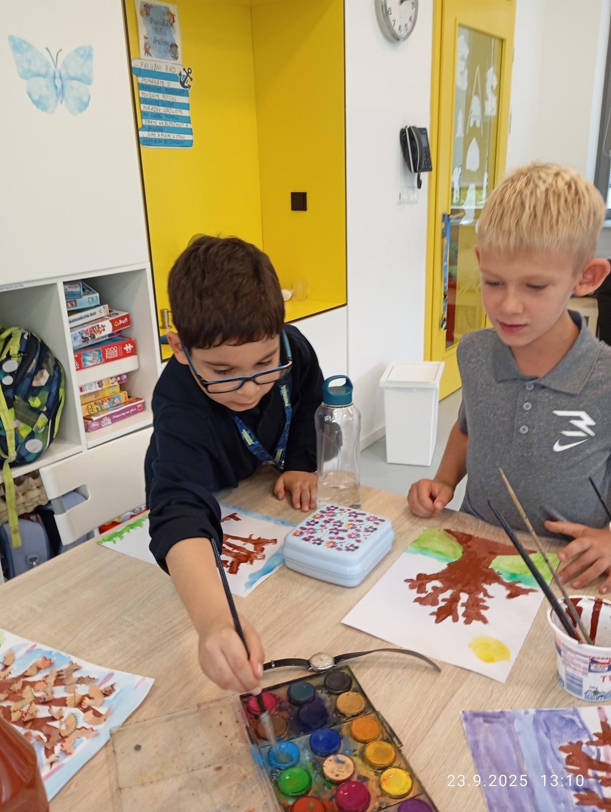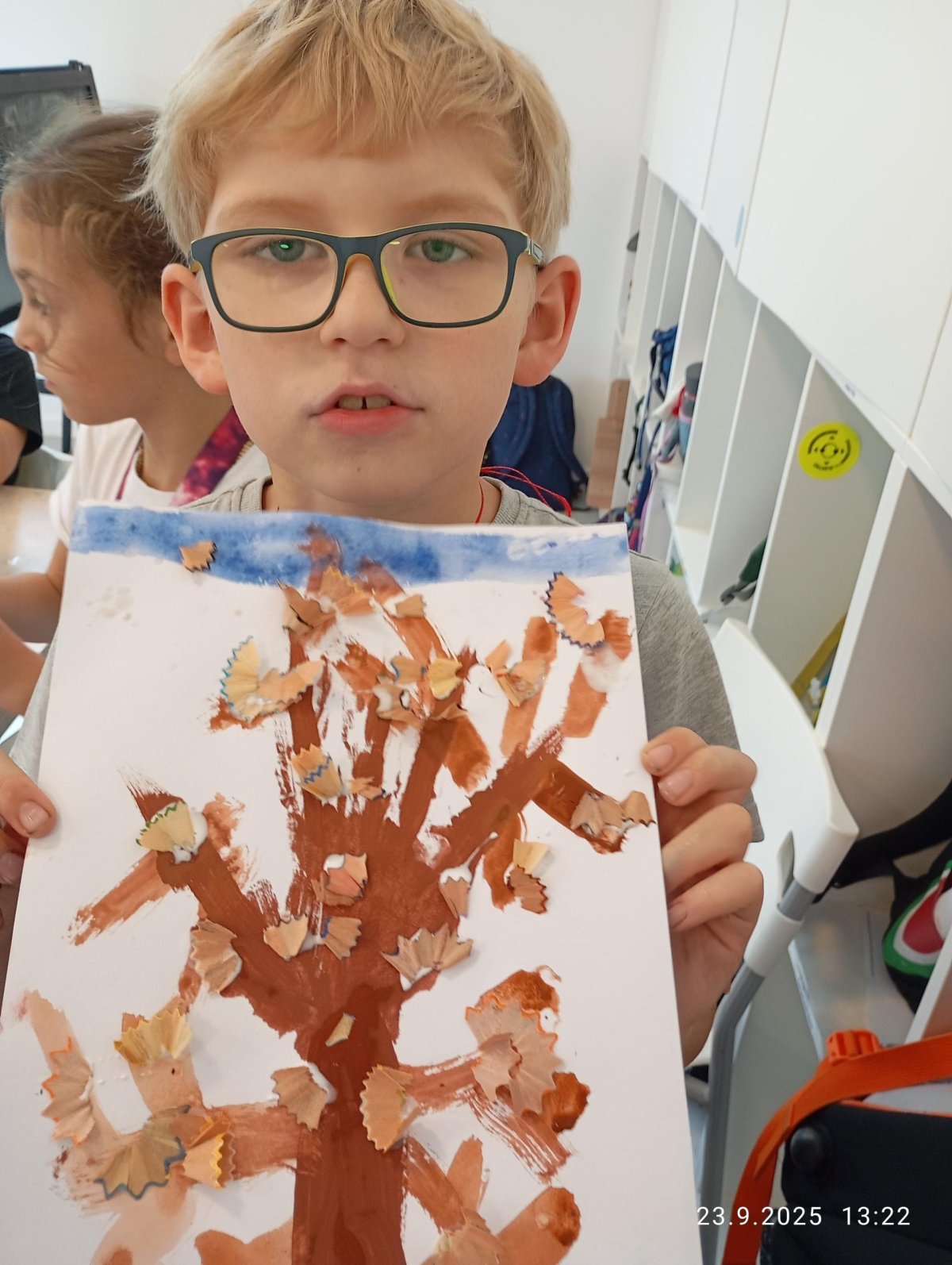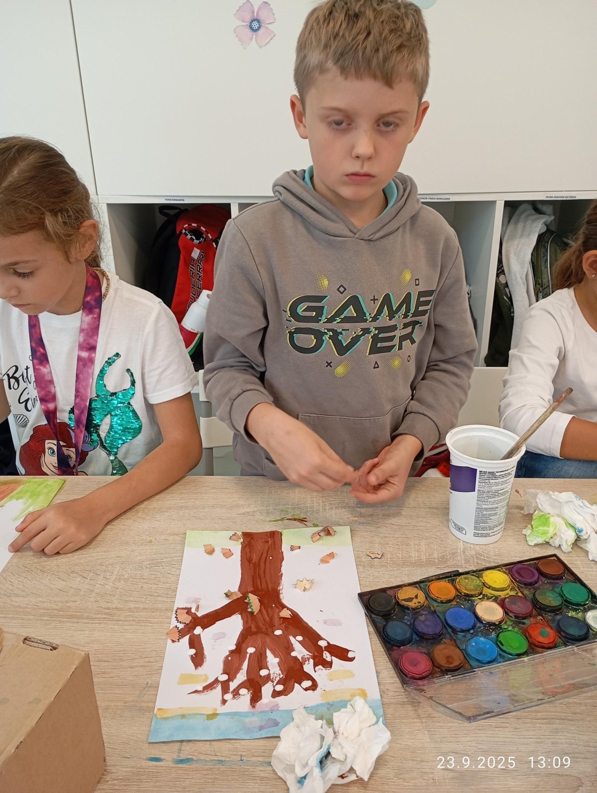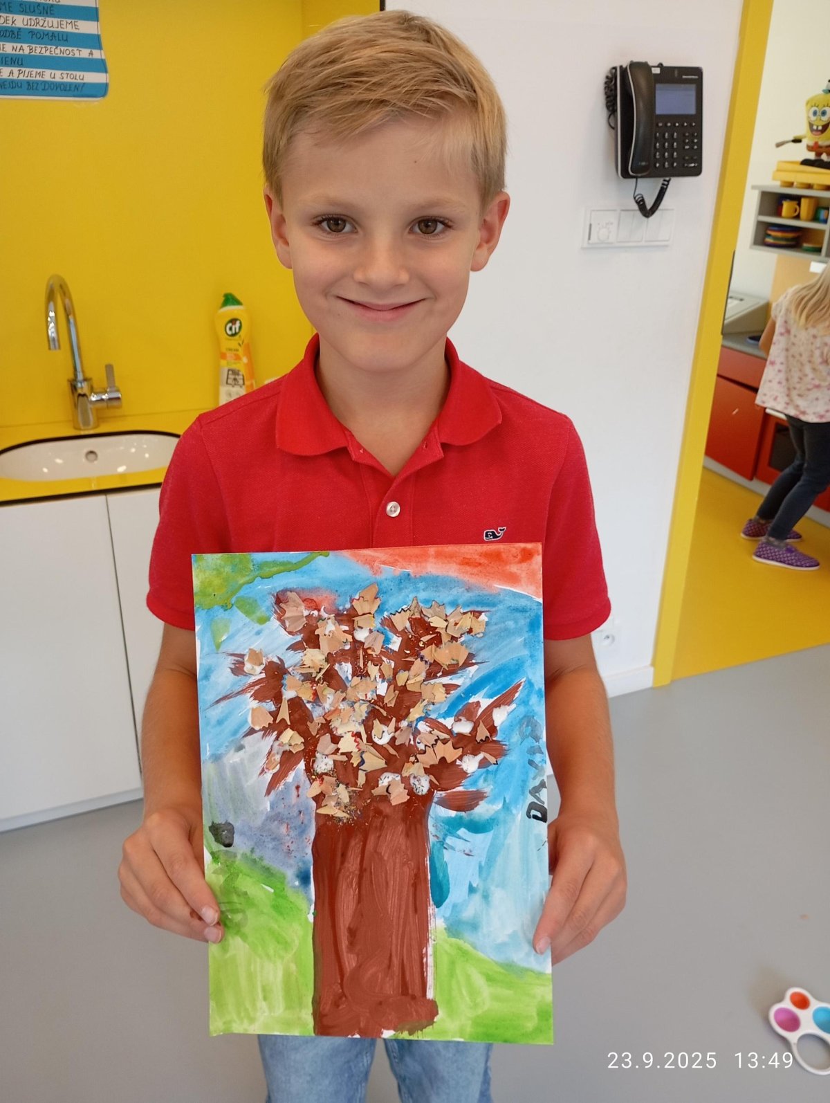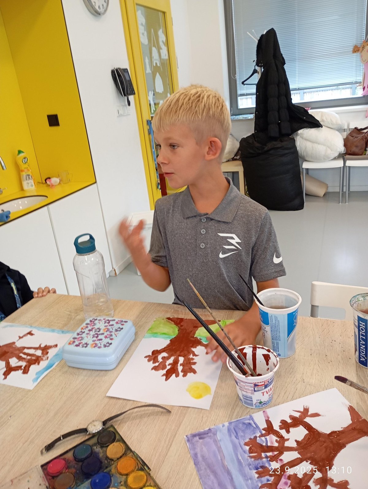 Podzim se nám hlísí hlavně detivým a chladným počasím. Takové dny jsou jako stvořené na vyrábění. Obtiskli jsme si dlaně a domalovali každý svůj strom, pak přišlo na řadu pozadí. místo listů jsme použili hoblinky z ořezaných pastelek. Zaschlé obrázky jsme projeli laminovačkou, aby nám neopadaly a dílo vylo na světě. Na koberci si děti hrají karty, nebo staví z různých stavebnic, děvčátka malují nebo vybarvují omalovánky.