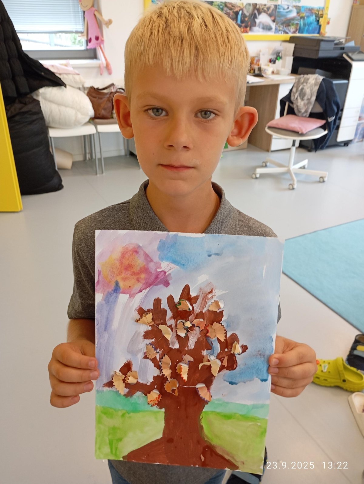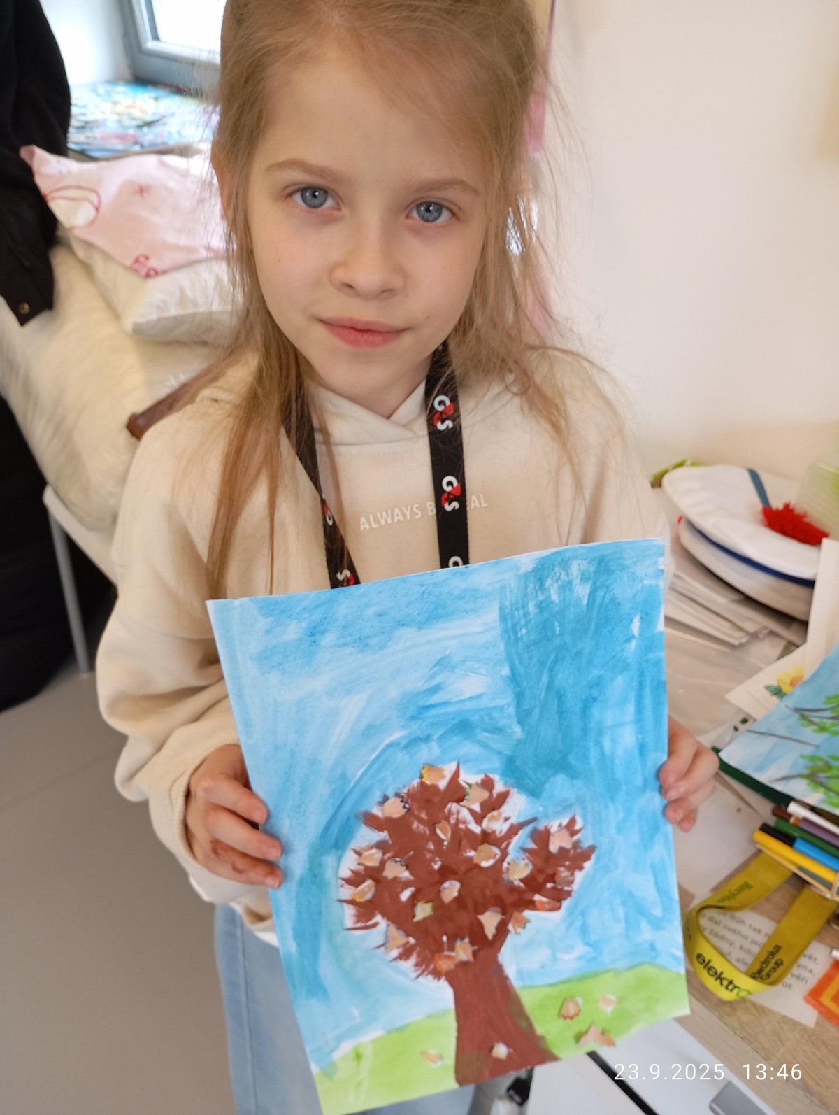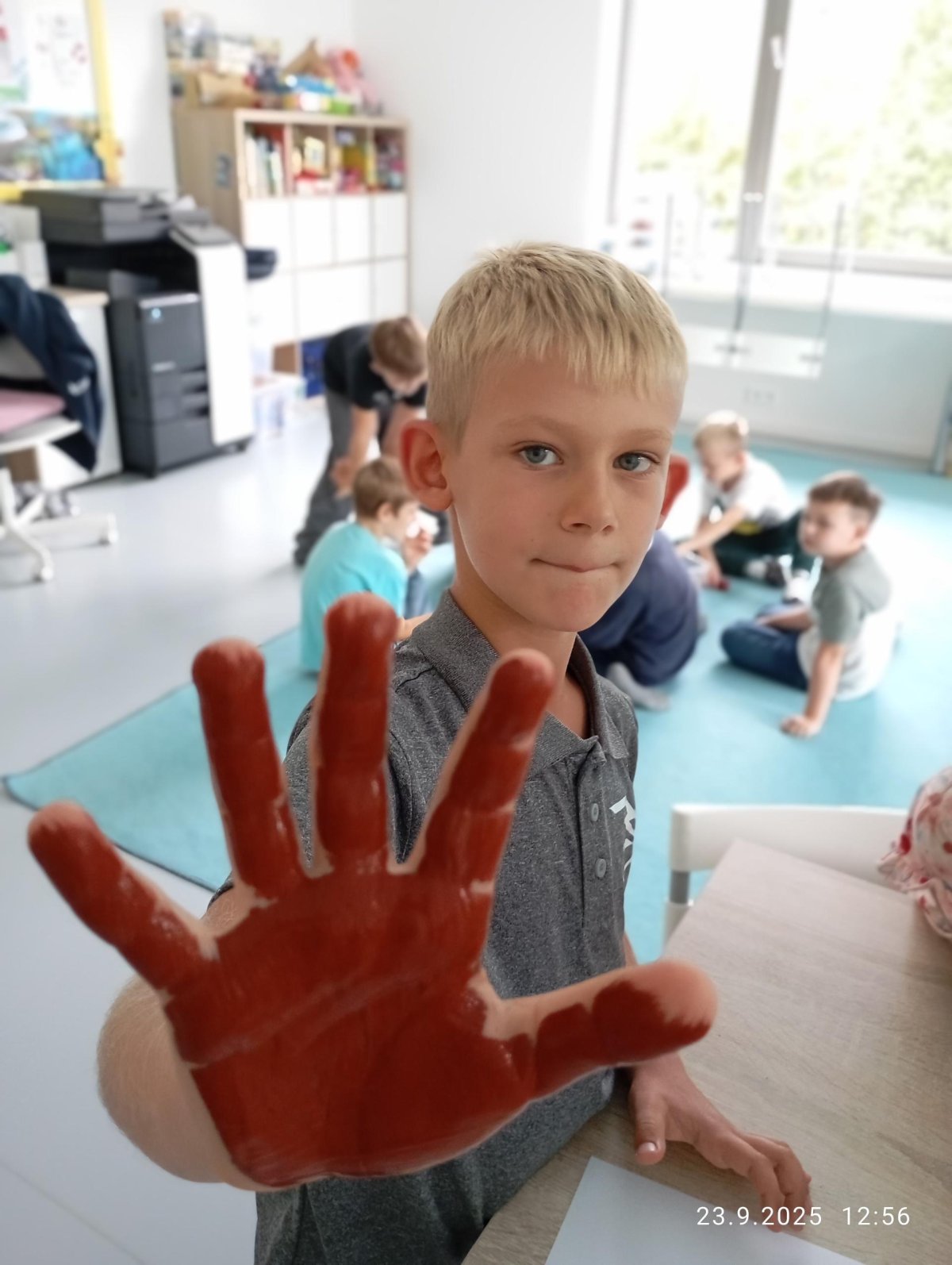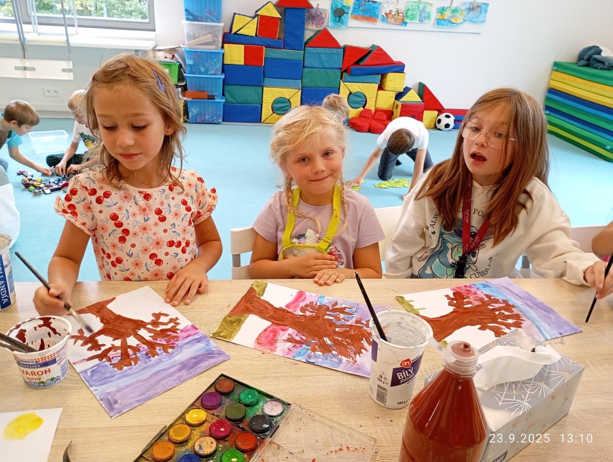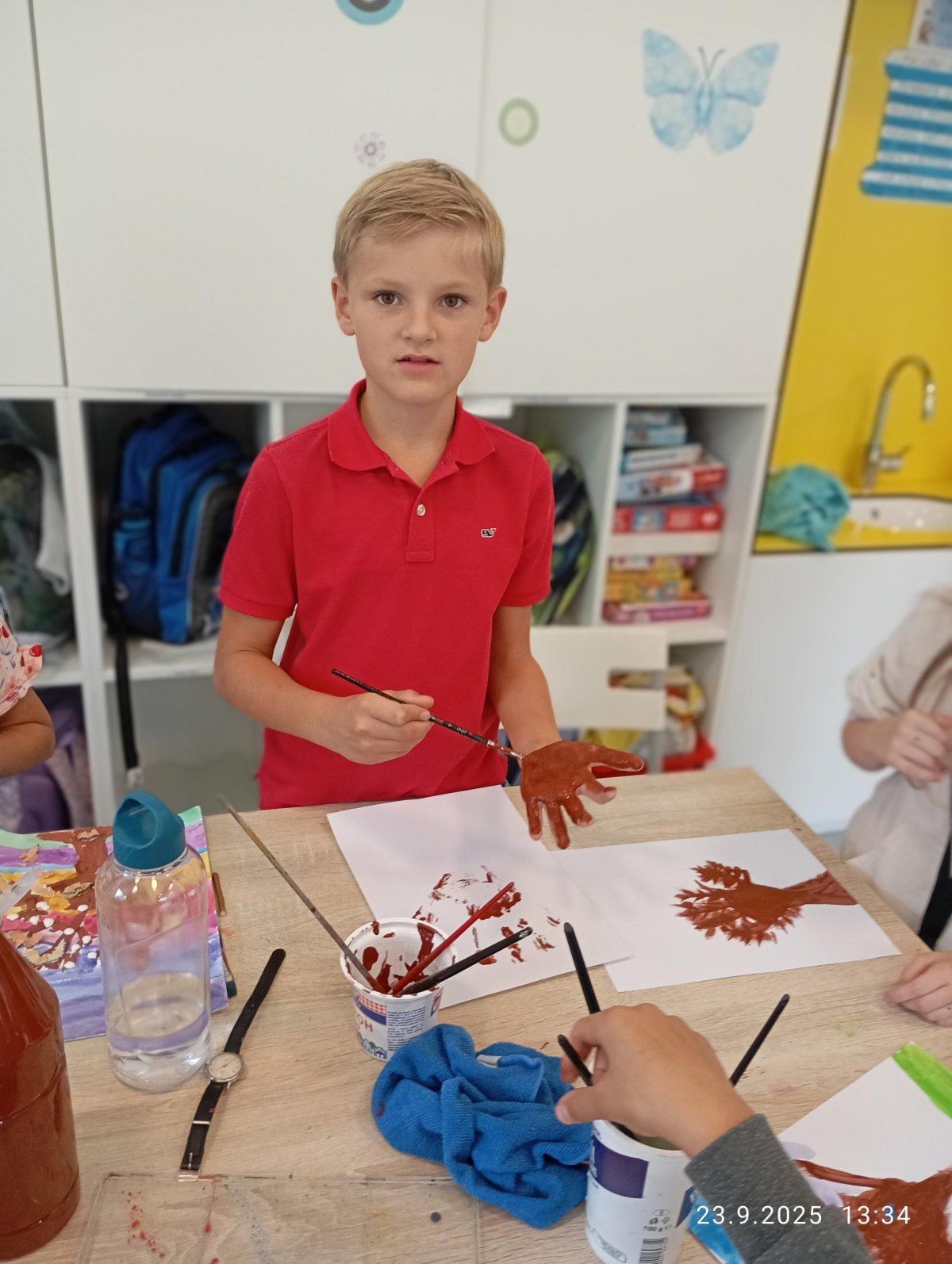 Podzim se nám hlísí hlavně detivým a chladným počasím. Takové dny jsou jako stvořené na vyrábění. Obtiskli jsme si dlaně a domalovali každý svůj strom, pak přišlo na řadu pozadí. místo listů jsme použili hoblinky z ořezaných pastelek. Zaschlé obrázky jsme projeli laminovačkou, aby nám neopadaly a dílo vylo na světě. Na koberci si děti hrají karty, nebo staví z různých stavebnic, děvčátka malují nebo vybarvují omalovánky.