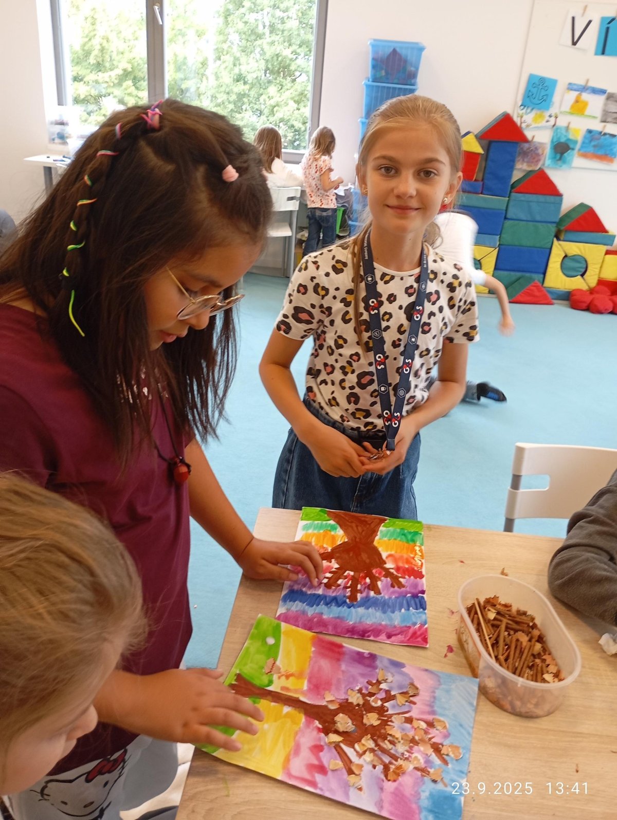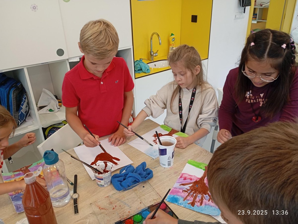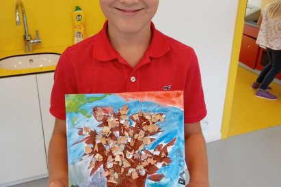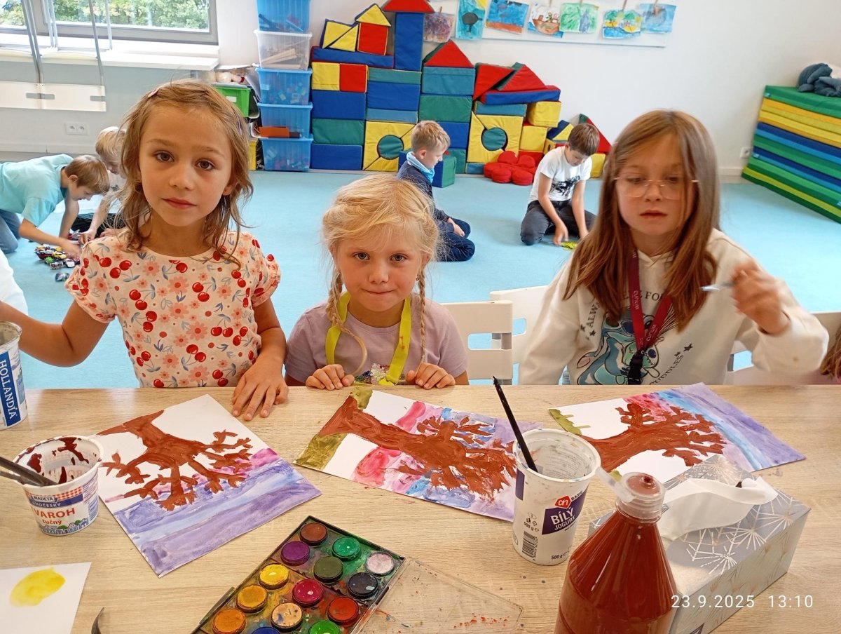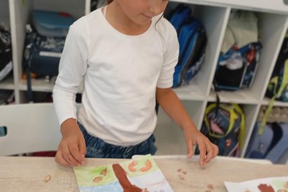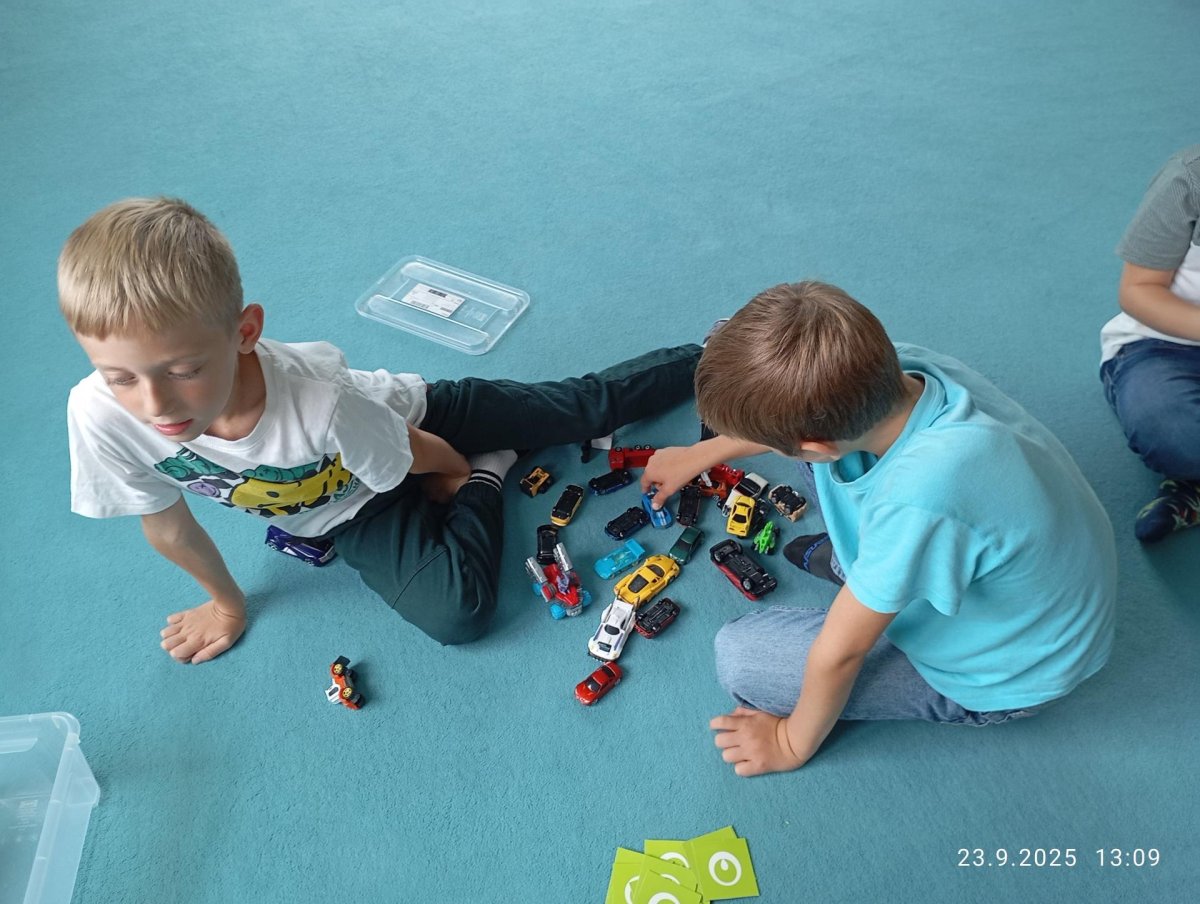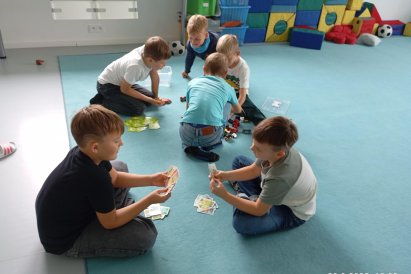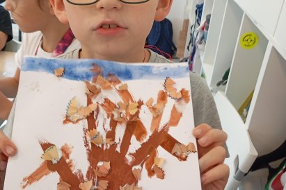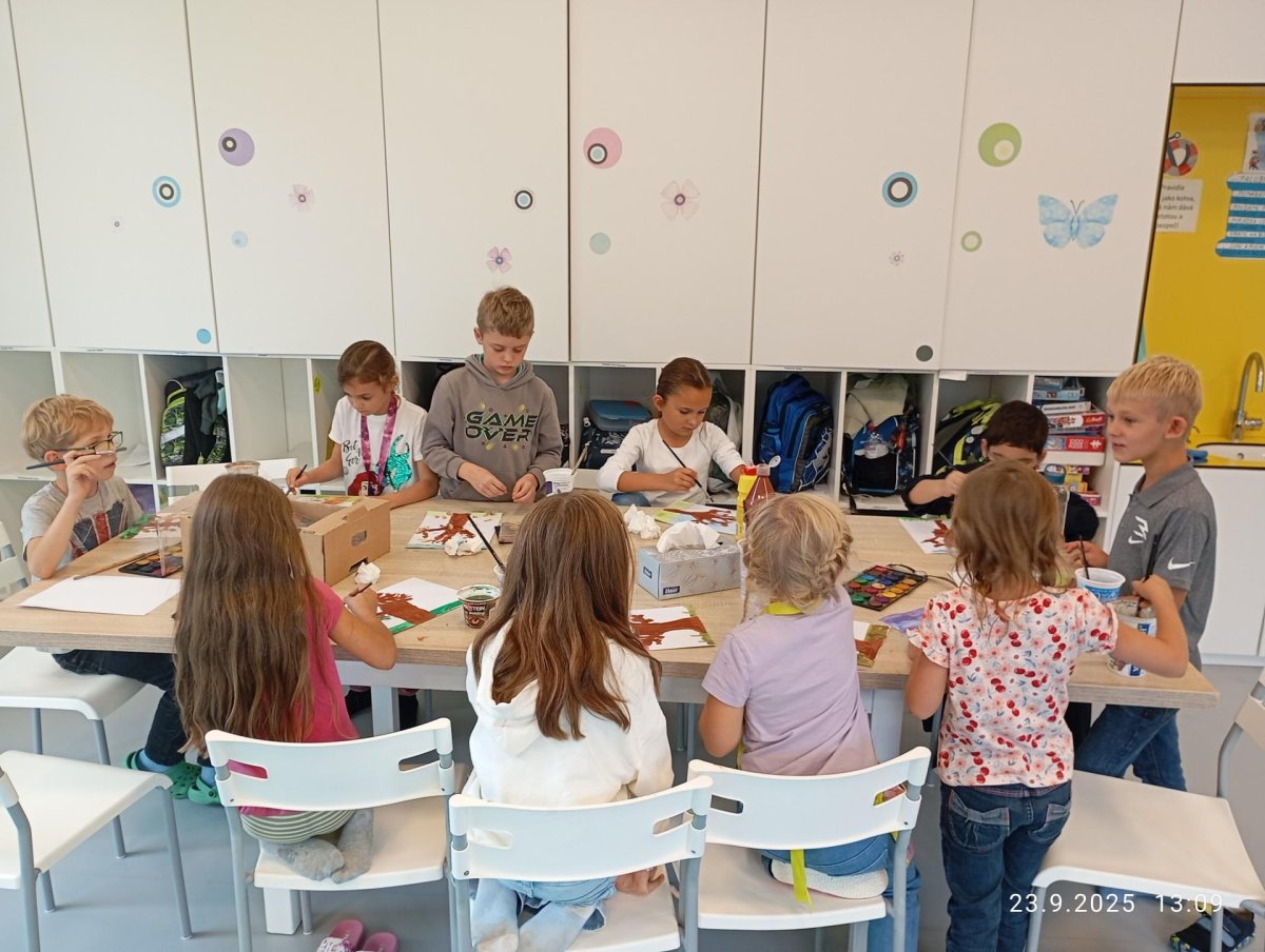 Podzim se nám hlísí hlavně detivým a chladným počasím. Takové dny jsou jako stvořené na vyrábění. Obtiskli jsme si dlaně a domalovali každý svůj strom, pak přišlo na řadu pozadí. místo listů jsme použili hoblinky z ořezaných pastelek. Zaschlé obrázky jsme projeli laminovačkou, aby nám neopadaly a dílo vylo na světě. Na koberci si děti hrají karty, nebo staví z různých stavebnic, děvčátka malují nebo vybarvují omalovánky.