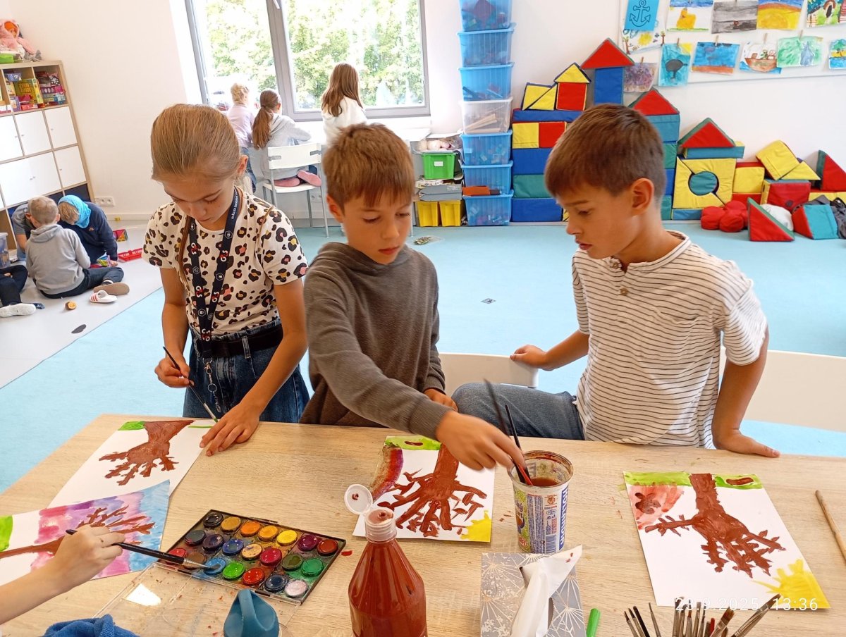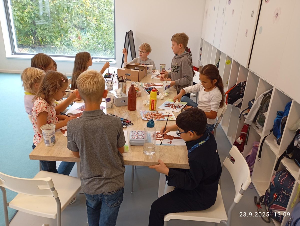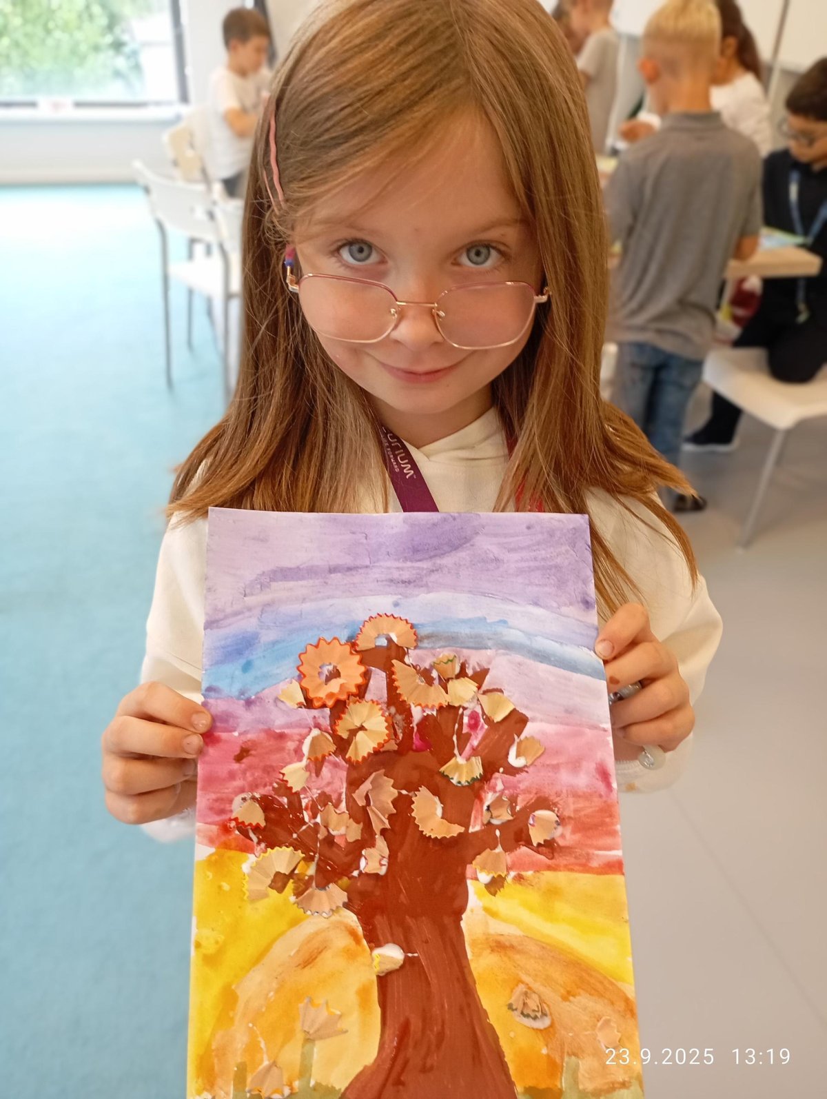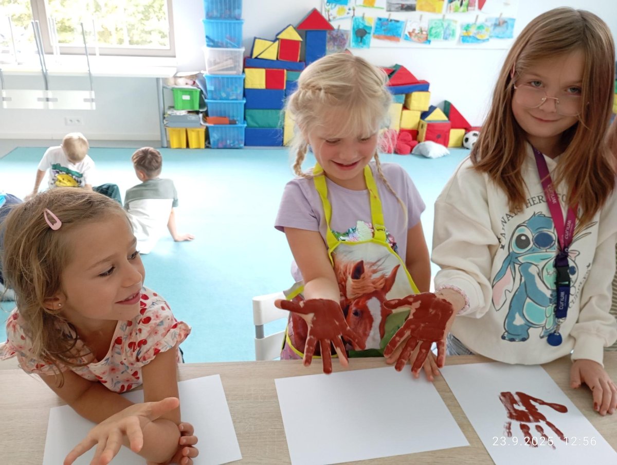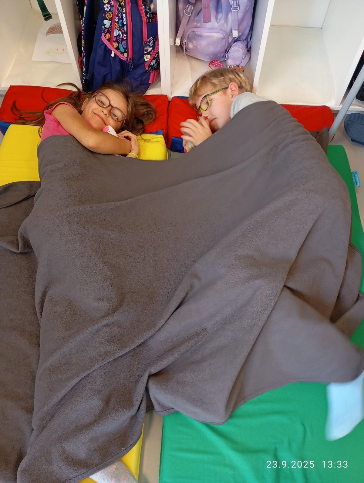 Podzim se nám hlísí hlavně detivým a chladným počasím. Takové dny jsou jako stvořené na vyrábění. Obtiskli jsme si dlaně a domalovali každý svůj strom, pak přišlo na řadu pozadí. místo listů jsme použili hoblinky z ořezaných pastelek. Zaschlé obrázky jsme projeli laminovačkou, aby nám neopadaly a dílo vylo na světě. Na koberci si děti hrají karty, nebo staví z různých stavebnic, děvčátka malují nebo vybarvují omalovánky.
