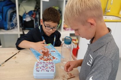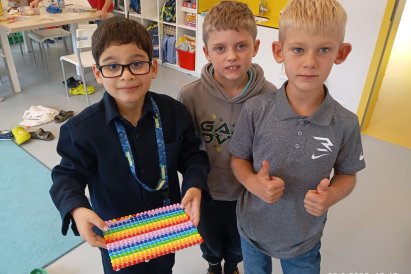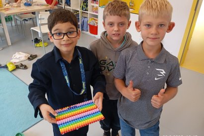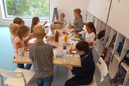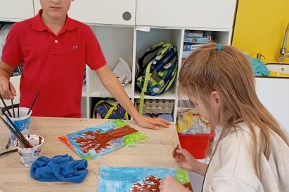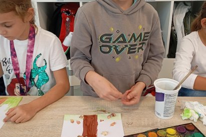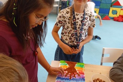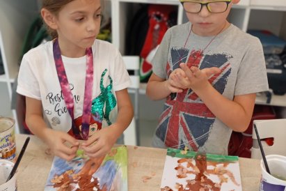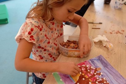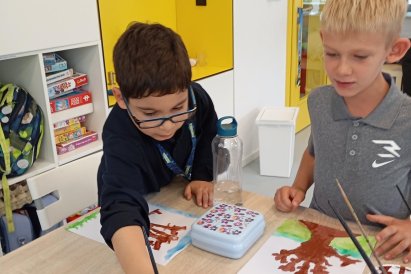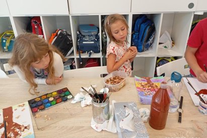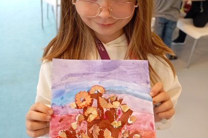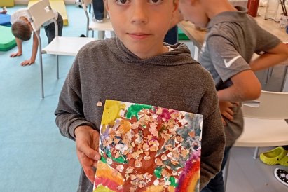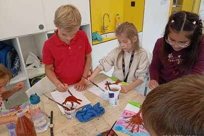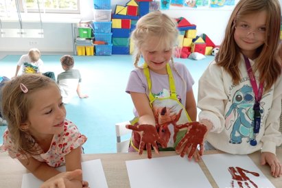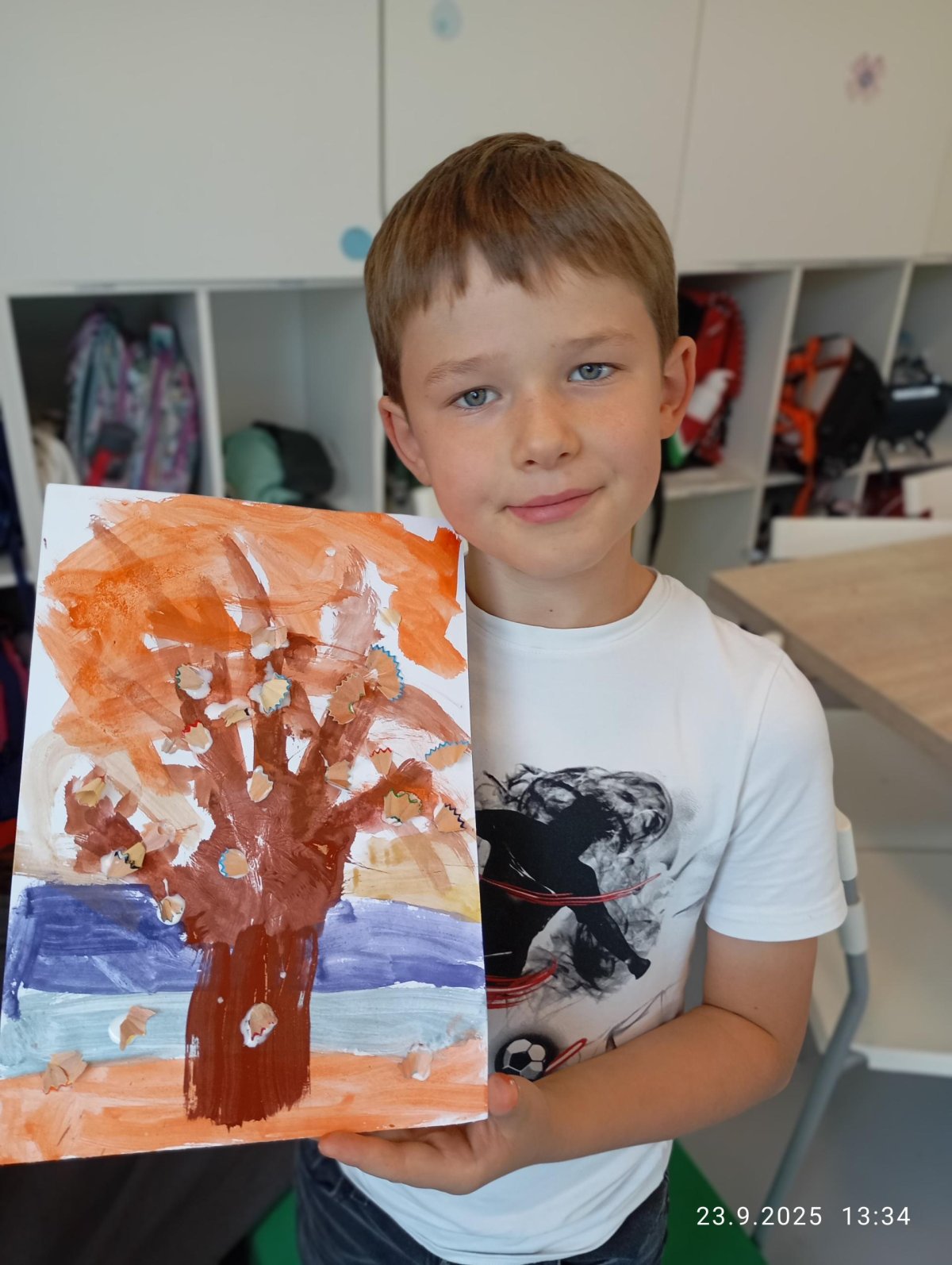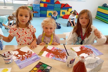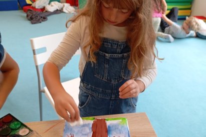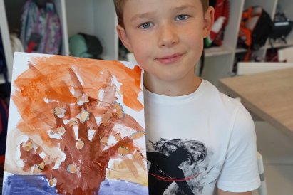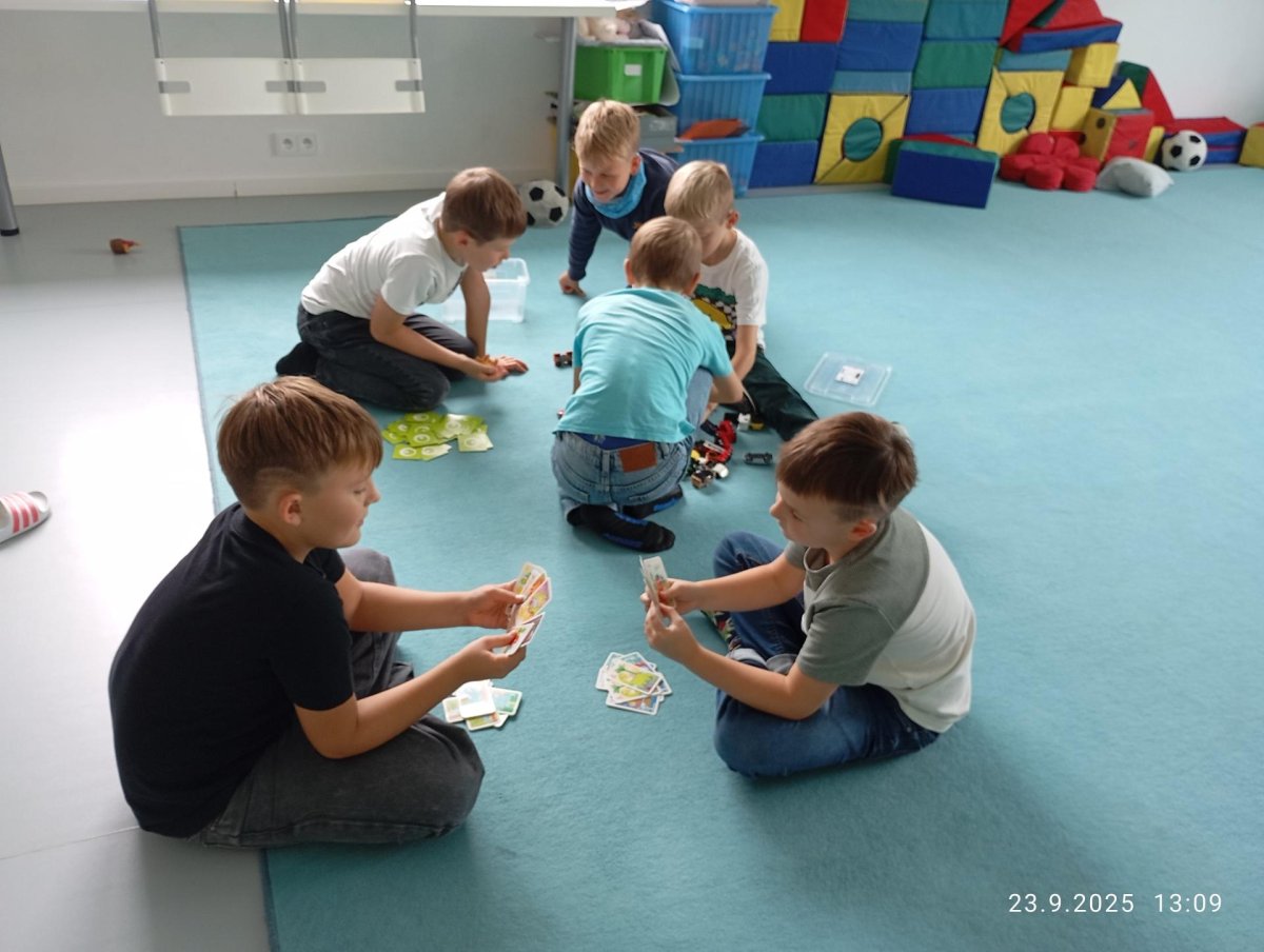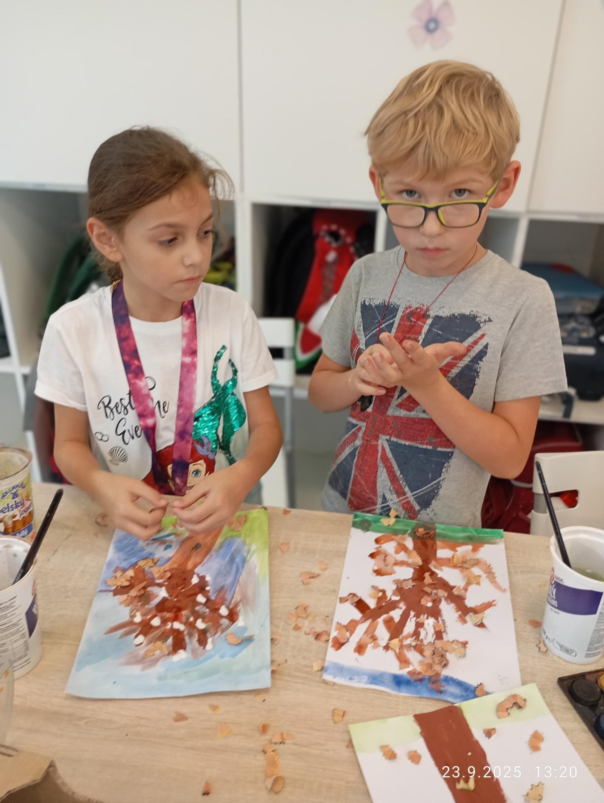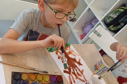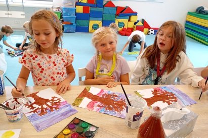 Podzim se nám hlísí hlavně detivým a chladným počasím. Takové dny jsou jako stvořené na vyrábění. Obtiskli jsme si dlaně a domalovali každý svůj strom, pak přišlo na řadu pozadí. místo listů jsme použili hoblinky z ořezaných pastelek. Zaschlé obrázky jsme projeli laminovačkou, aby nám neopadaly a dílo vylo na světě. Na koberci si děti hrají karty, nebo staví z různých stavebnic, děvčátka malují nebo vybarvují omalovánky.