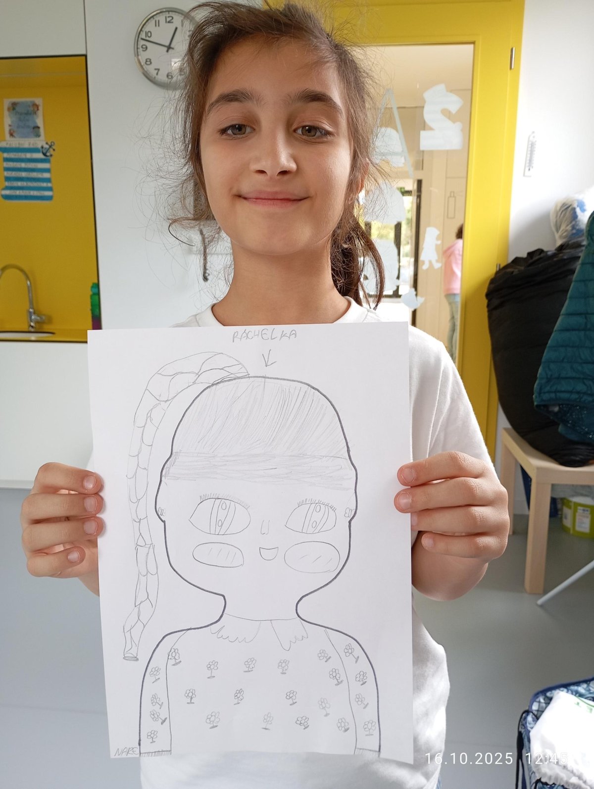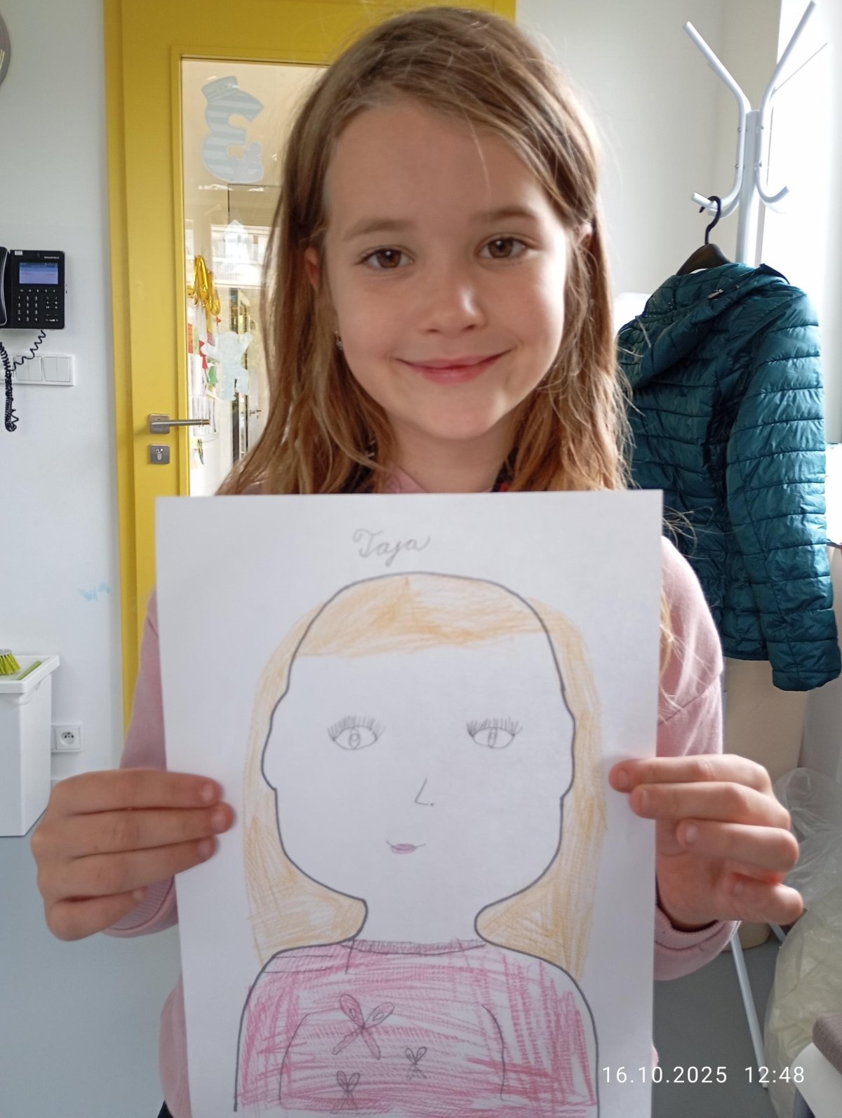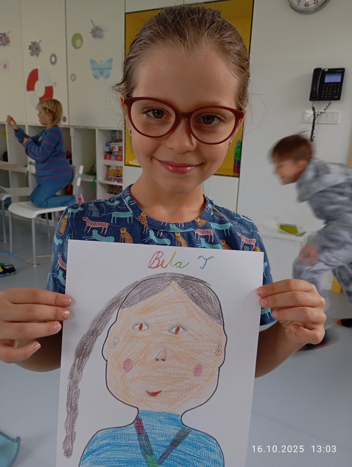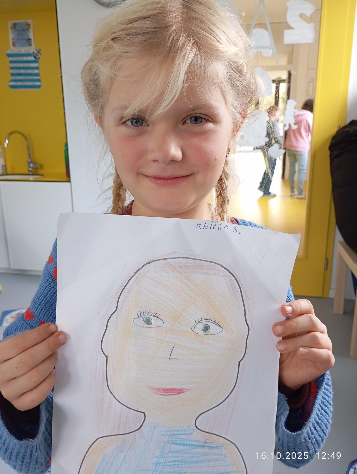 V minulém týdnu jsme se pustili do portréti kamaráda, někteří modelové si byly na obrázkách opravdu podobní a jiné obrázky ostatní pobavily, v obou případech děti krásně pracovaly a pak se běželo ven, protože podzim začíná hrát všemi barvami.