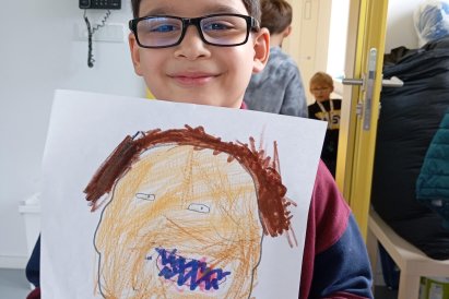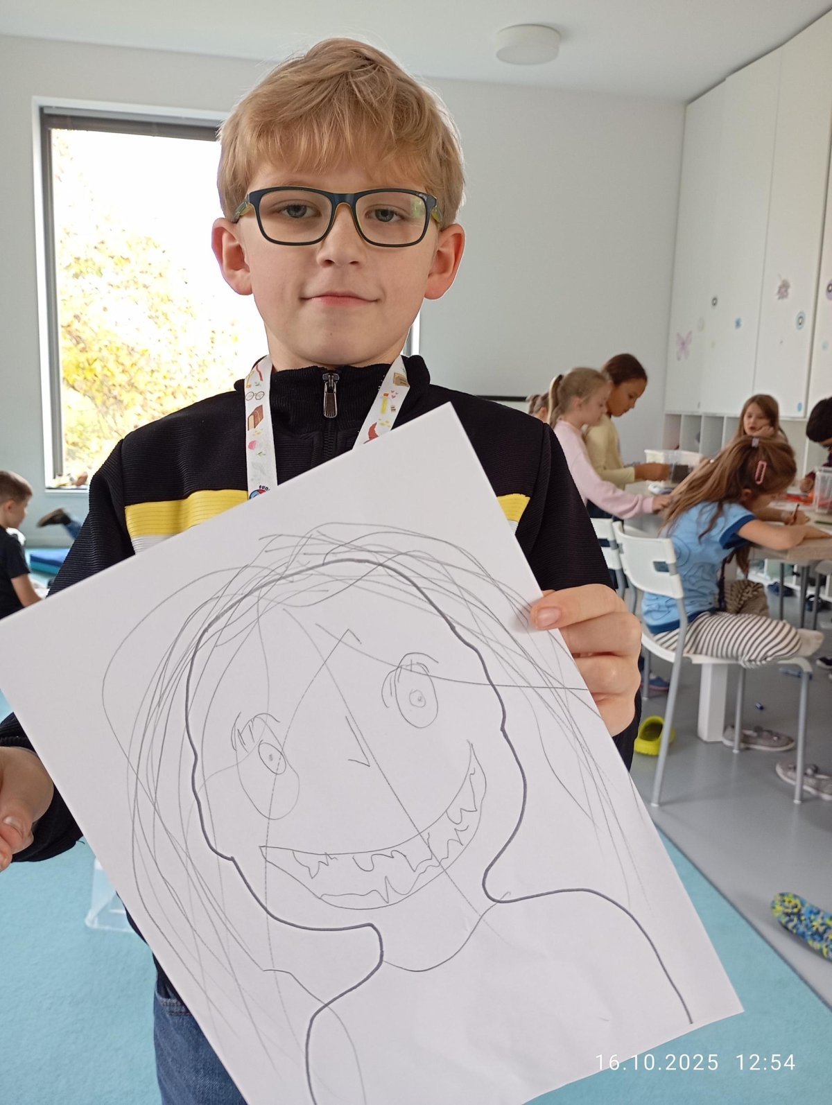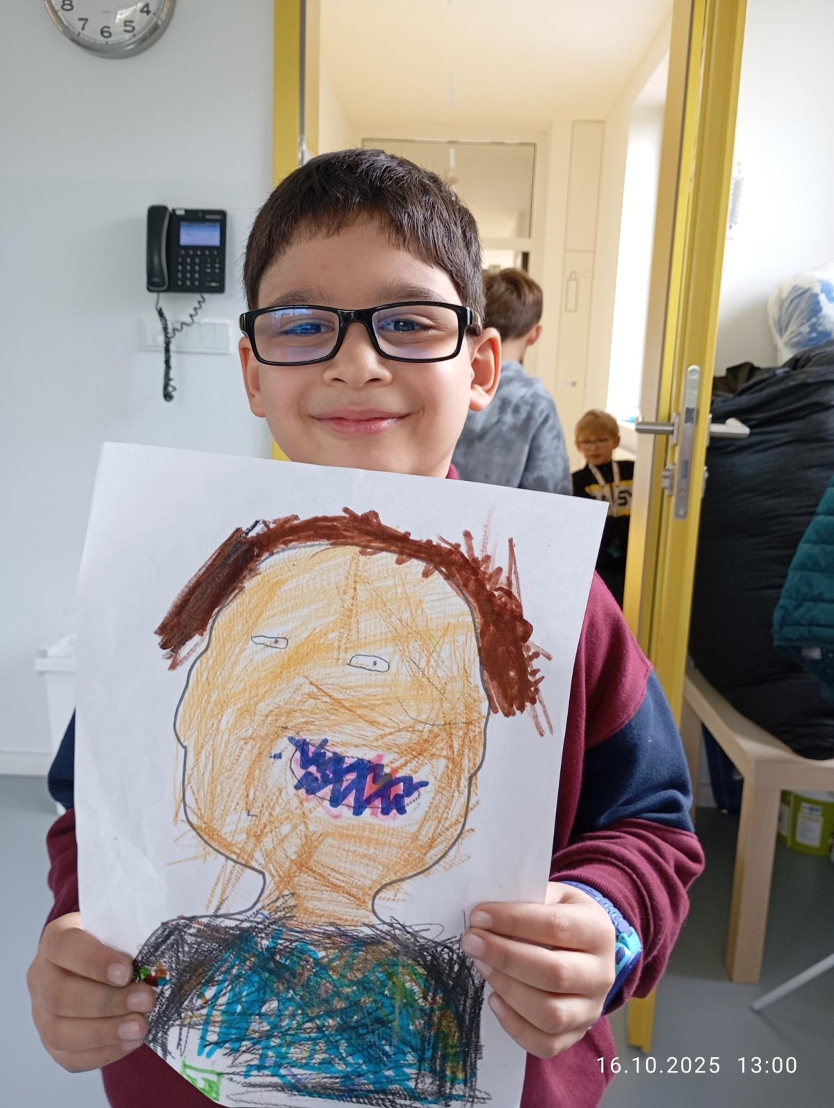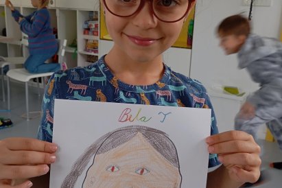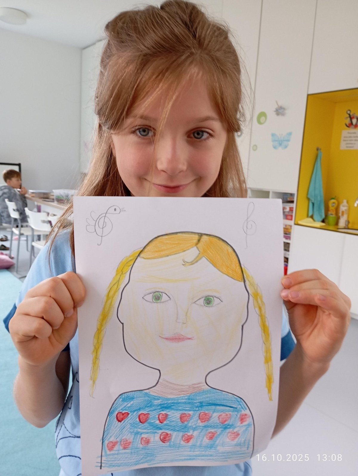 V minulém týdnu jsme se pustili do portréti kamaráda, někteří modelové si byly na obrázkách opravdu podobní a jiné obrázky ostatní pobavily, v obou případech děti krásně pracovaly a pak se běželo ven, protože podzim začíná hrát všemi barvami.
