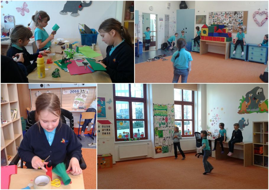 Dnešní pondělní sluníčko lákalo všechny děti ven. Krásně jsme si zaskákali s lanem, běhali po hřišti, hráli s míčem. V družině jsme si četli příběh o čistotě a z korálku tvořili krásné náhrdelníky. Naše okénka jsme také vyzdobili primulkami, které jsme vyrobili z ruliček od toaletního papíru. Vybíjená v družině se stala pravidelnou hrou a moc nás baví, když můžeme křičet, běhat a máme k tomu prostor.