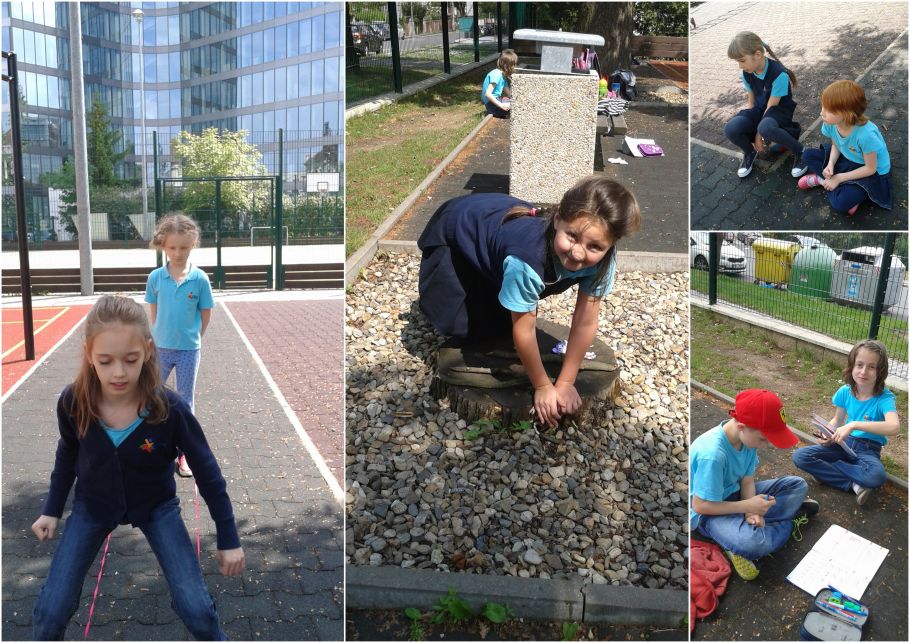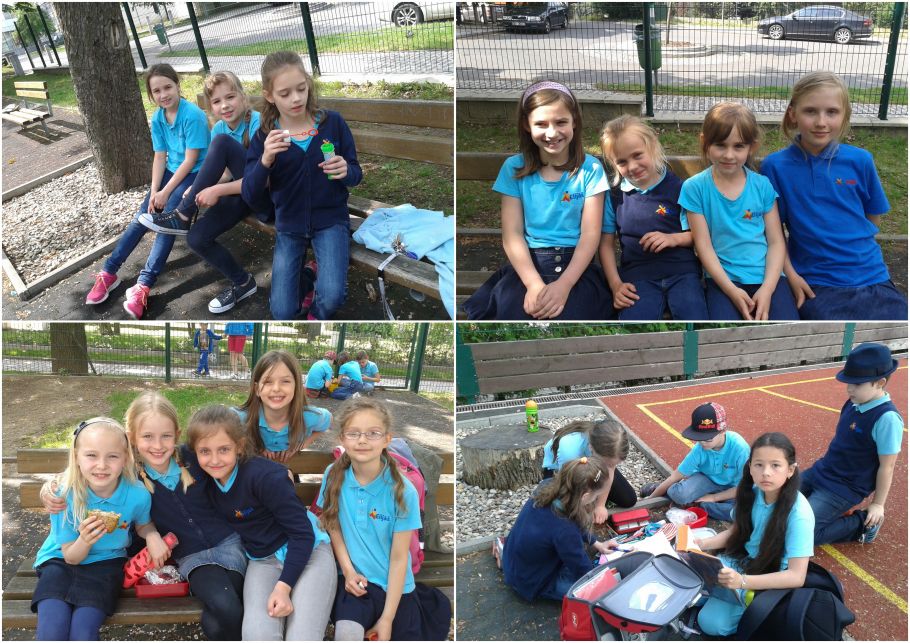 Venku bylo krásně, měli jsme sportovky, skákali jsme na hřišti přes gumu, házeli basketbalovým míčem, honili se, psali úkoly a povídali si. Venku jsme zůstali tak dlouho, jak to jen šlo.