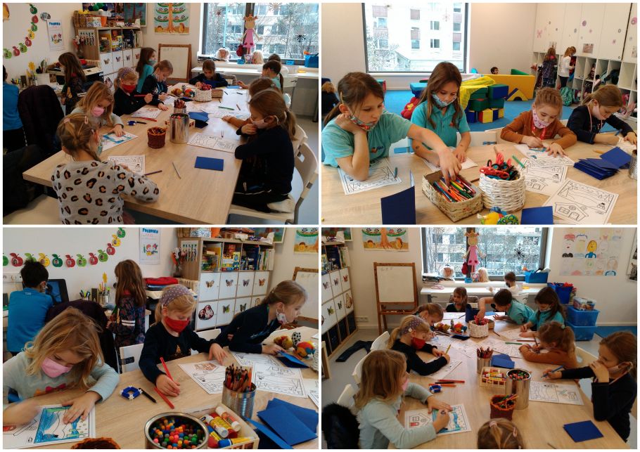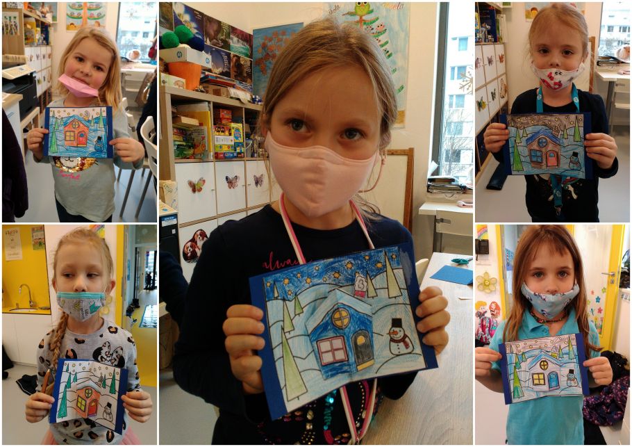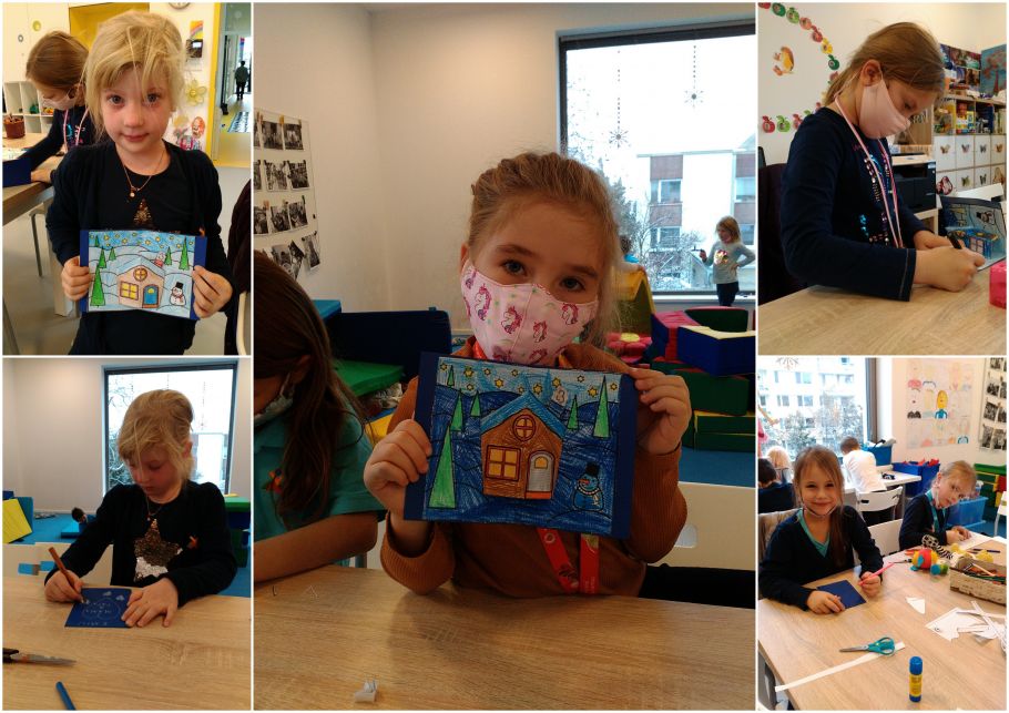 První sníh je tady a my jsme ho naplno využili. Hned po obědě jsme byli první, kteří se na sněhu váleli, koulovali se, dělali sněhuláčky. To byla radost. Po půlhodince jsme byli všichni mokří, a tak jsme šli do družiny. Svlékli jsme si mokré oblečení a začali malovat zimní krajinku. Vyráběli jsme dnes zimní pozdrav. Dětem se to skutečně moc povedlo. Někteří si vyrobili i dva. Pak jsme si hráli, stavěli domečky, korálkovali, malovali na tabuli a povídali si.