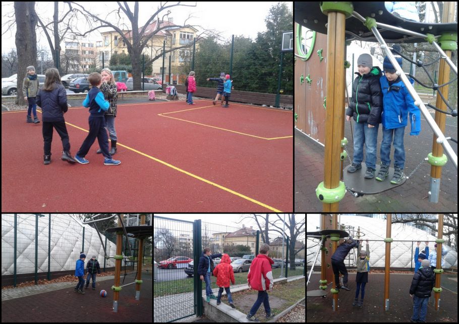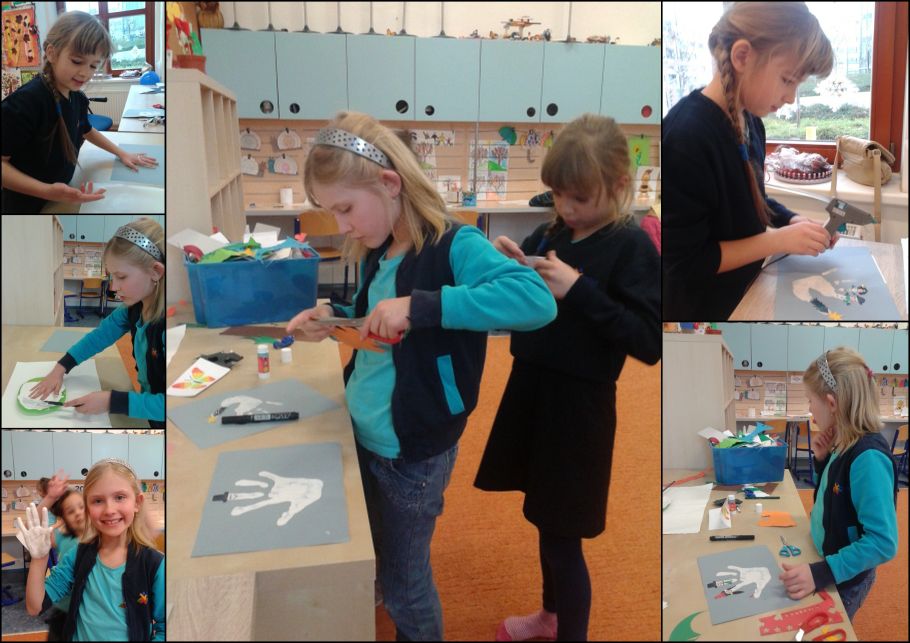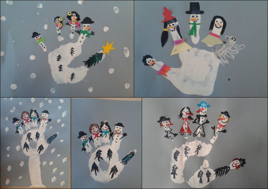 Jako každé pondělí, tak i dnes se děti vrací do školy nabité energii, která se nedá vybít nijak, než tím, že půjdeme ven. Tam můžou s chutí křičet, hrát fotbal, honit se a mají k tomu dostatek prostoru. Než jsme se dostali ven, pilně jsme pracovali. Malovali jsme rukama a vytvořili rodinku sněhuláků na ruce. Kromě toho jsme začali vyrábět stromečky a zdobit je korálky. Zatím máme jenom 3 kusy, ale zítra jich bude víc.