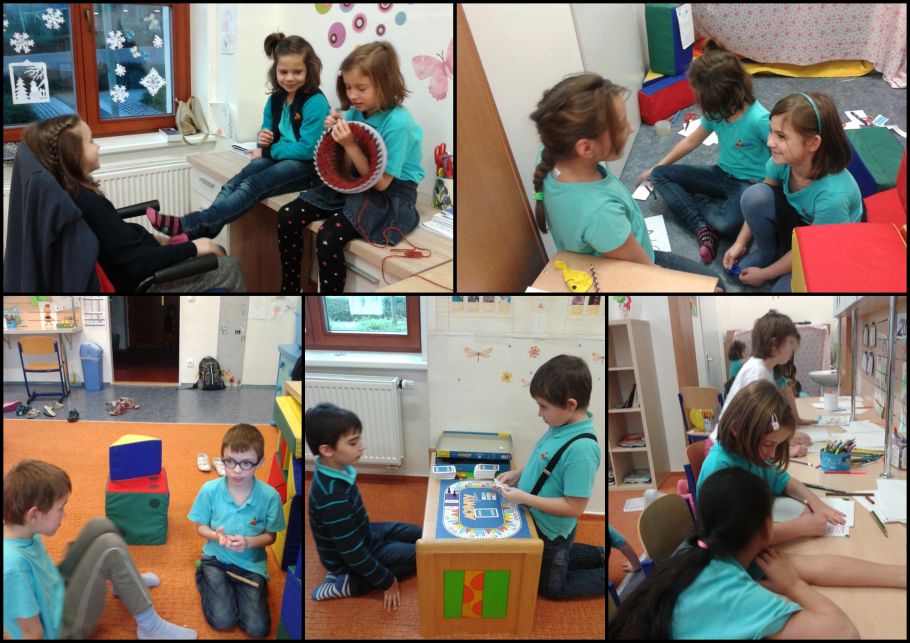 V družině jsme odpočívali, stavěli domečky z molitanových kostek, psali úkoly, hráli hry, běhali, povídali si a malovali podle šablon.
