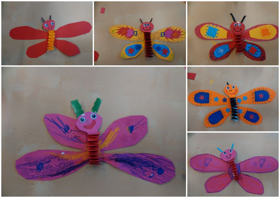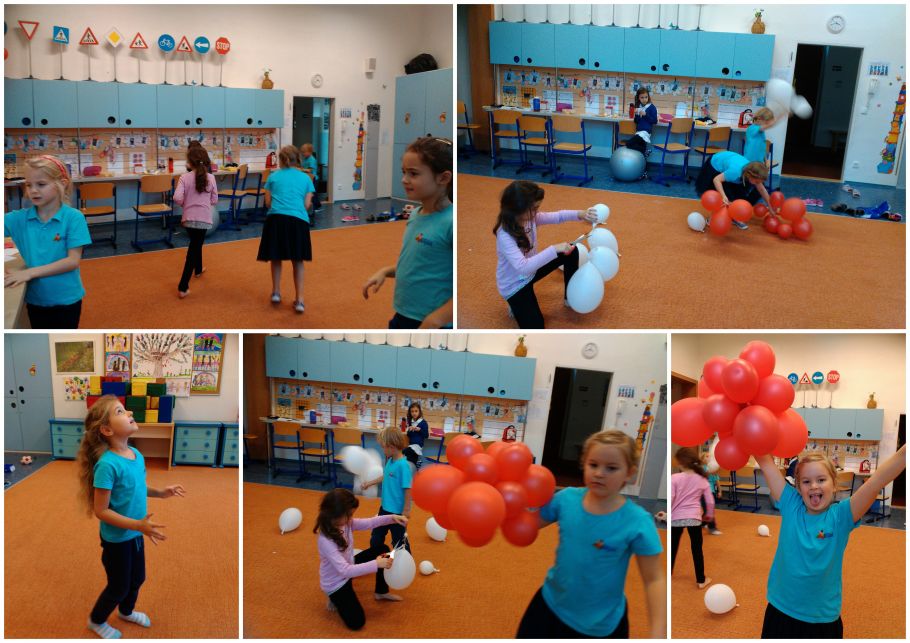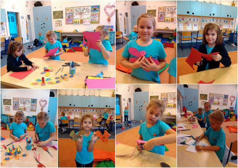 Dnes jsme si vyrobili poskládaného motýlka a začali jsme malovat skládanou kytičku, kterou dokončíme zítra. V družině jsme si zahráli s balónky a byli jsme také na kytaře a fotbalu.