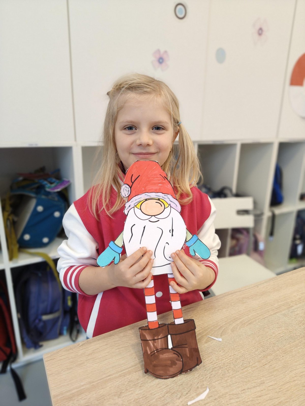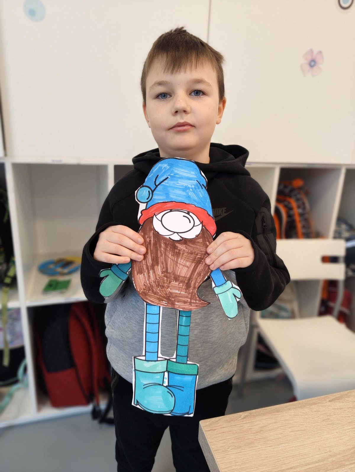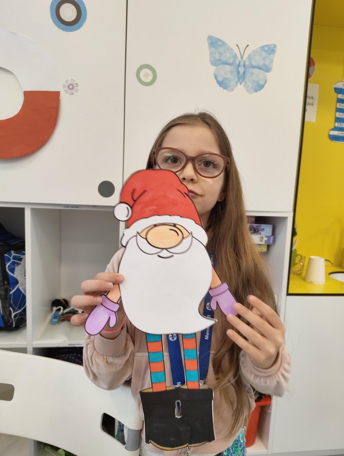 Dnes jsme si četli pohádku o skřítkovi, který utekl z jedné knihy a hledal další skřítky. Venku padal sníh a ve družině byla příjemná atmosféra. Potom jsme si vyrobili roztomilého skřítka. Každý si ho představoval jinak, a tak vznikli veselí skřítci v různobarevných ponožkách, rukavičkách a čepičkách. Vyrábění nás moc bavilo a měli jsme z něj radost.