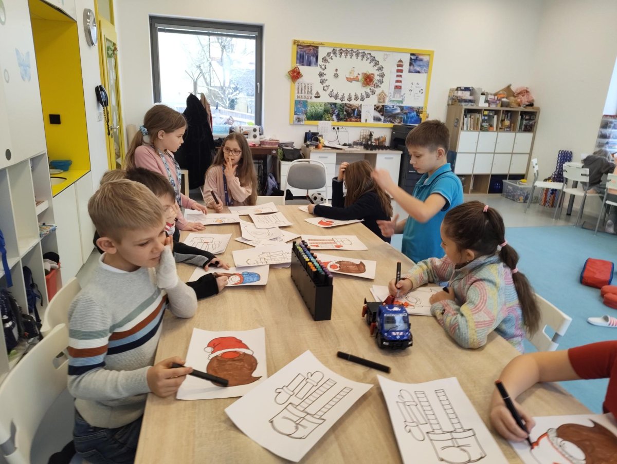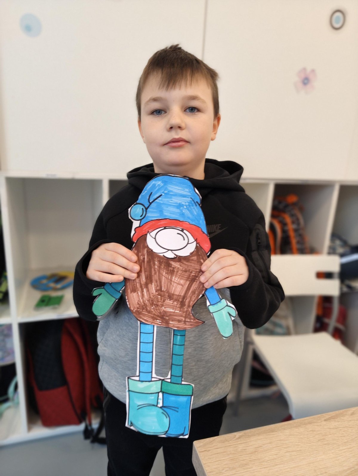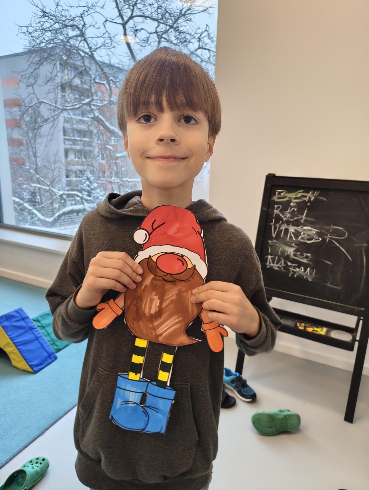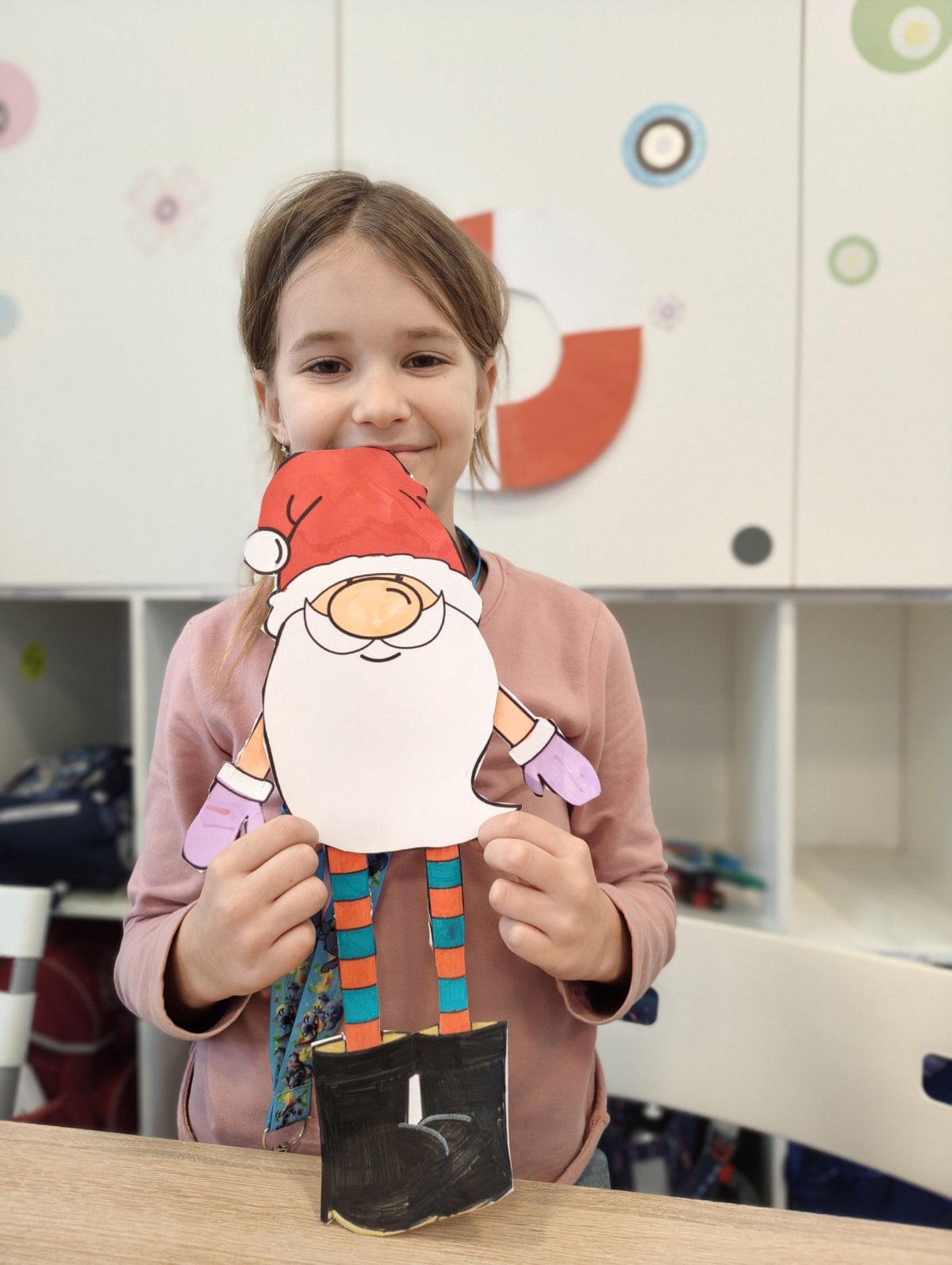 Dnes jsme si četli pohádku o skřítkovi, který utekl z jedné knihy a hledal další skřítky. Venku padal sníh a ve družině byla příjemná atmosféra. Potom jsme si vyrobili roztomilého skřítka. Každý si ho představoval jinak, a tak vznikli veselí skřítci v různobarevných ponožkách, rukavičkách a čepičkách. Vyrábění nás moc bavilo a měli jsme z něj radost.