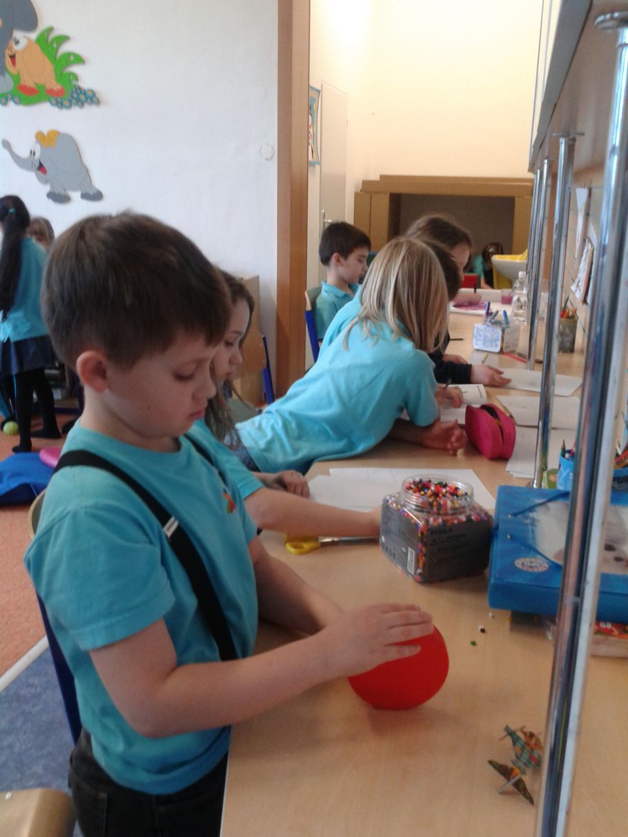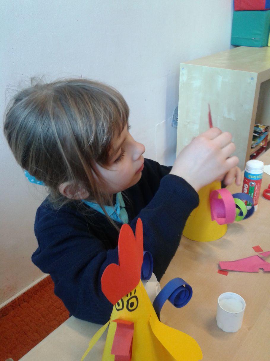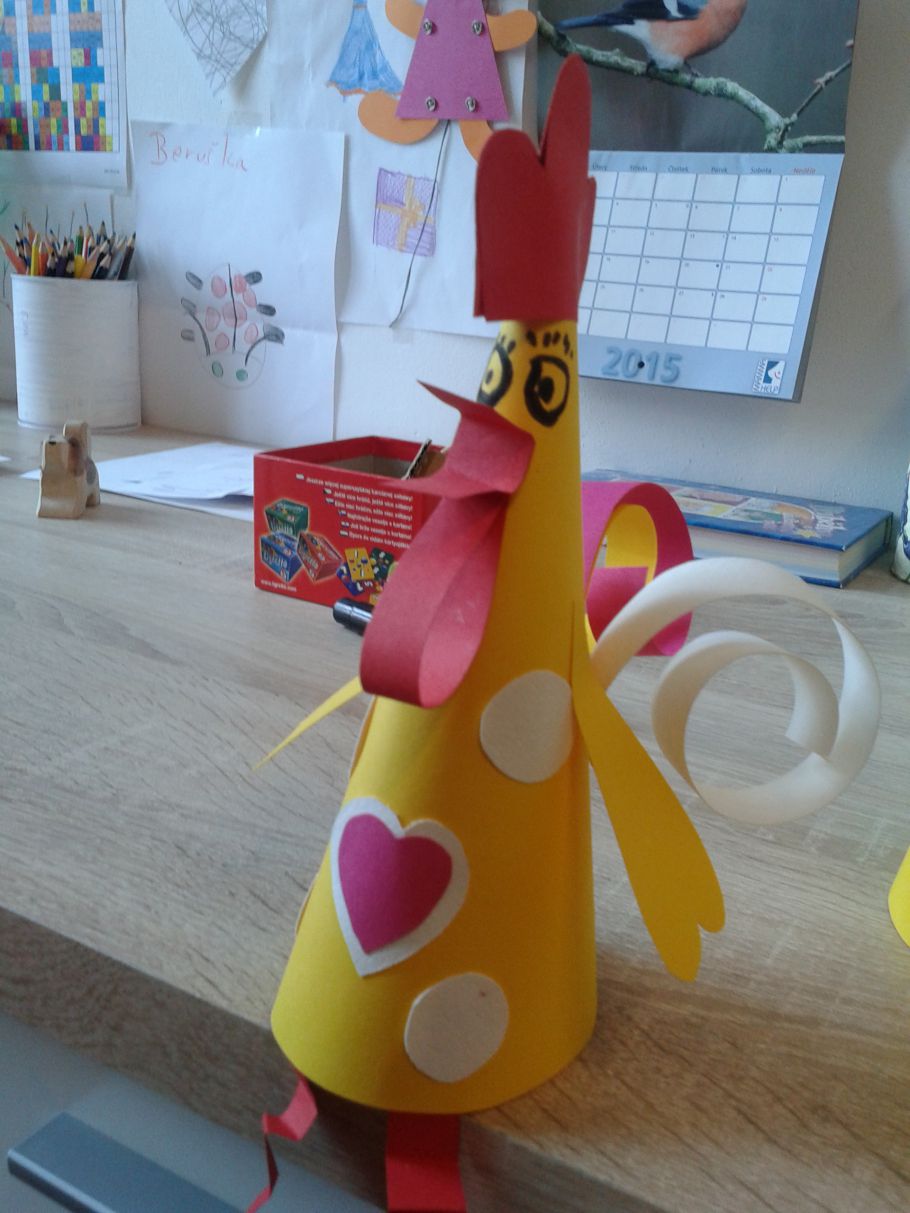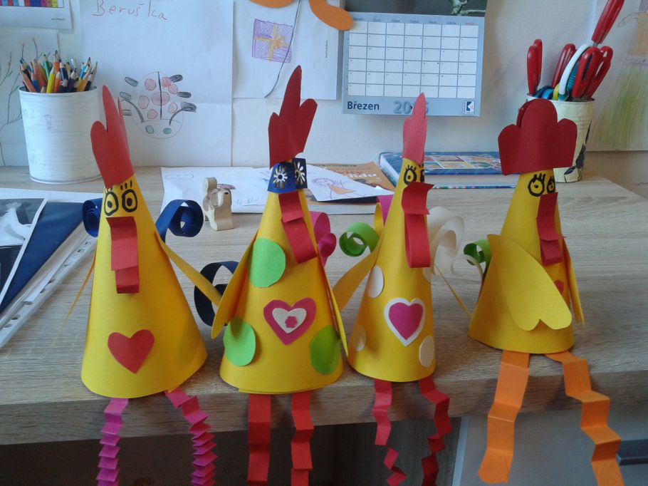 Jaro se snažíme přivolat, co nám síly stačí. Vyvěsili jsme krásné barevné kytičky do oken a vyrobili první slepičky. Ve družině jsme se hráli, malovali, korálkovali a pak jsme šli ven.