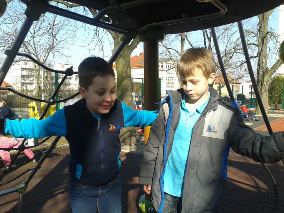 Sluníčko se na se na nás odpoledne opravdu usmívalo a mohli jsme se pořádně po dlouhé době vydovádět na hřišti.