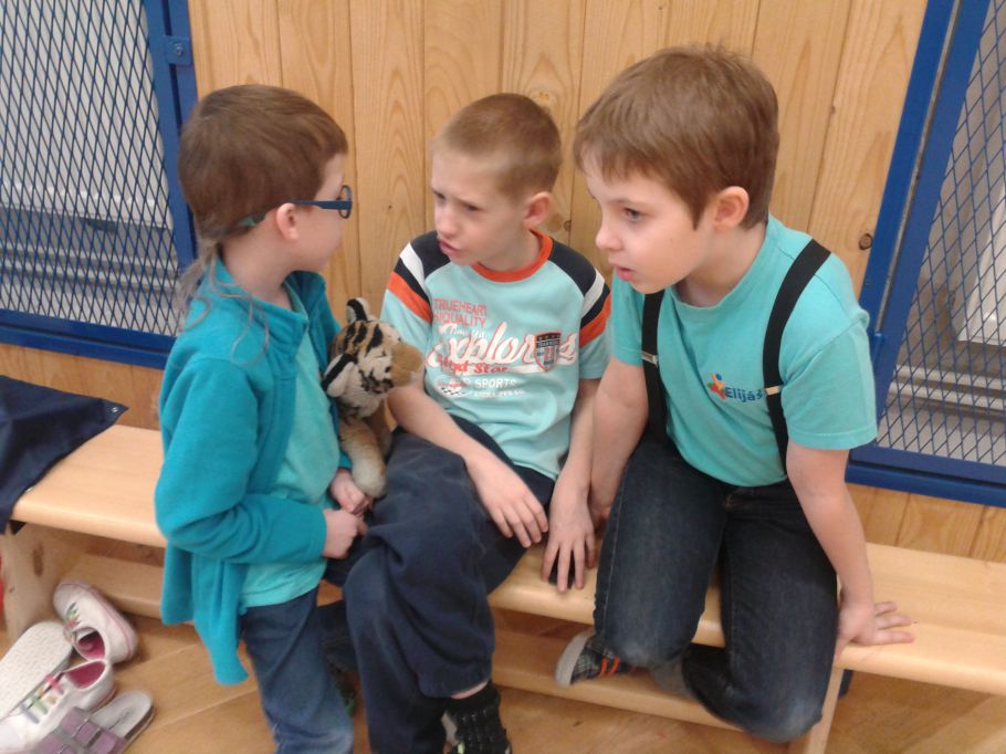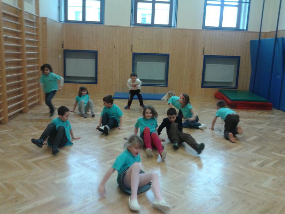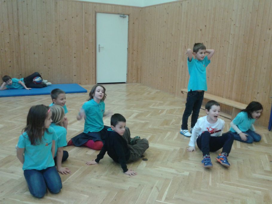 Tenhle týden jsou děti hodně živé, a proto musíme vybíjet energii v hale, nebo jako dnes, v tělocvičně. Trochu jsme si zaběhali dopředu, pak zase dozadu, a nakonec byla vybíjená.