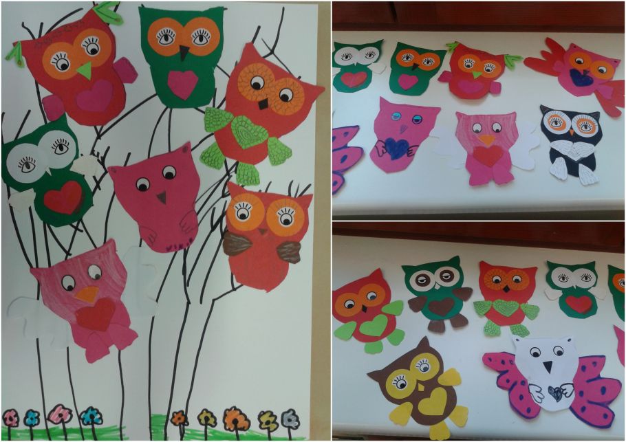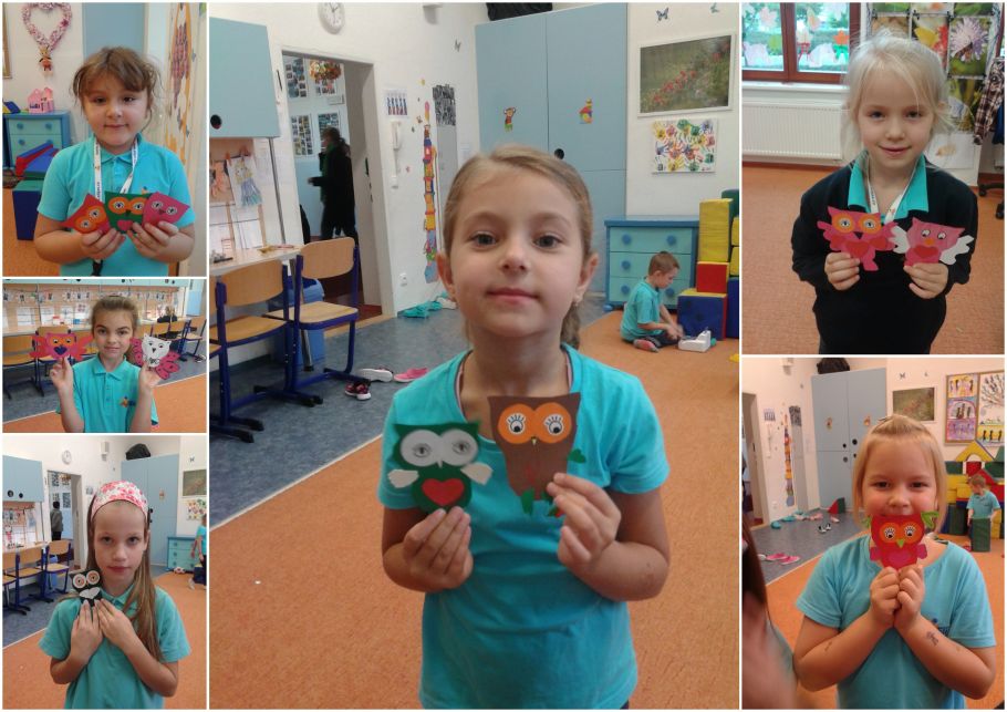 V pracovních činnostech jsme vyráběli sovičky, které jsme pak nalepili na strom. U toho jsme si povídali o sovách. Každý přispěl troškou moudrosti a také jsme se u toho zasmáli. Naše pravidlo jít každý den na chvíli ven pokud to počasí dovolí jsme naplnili a trochu jsme si zaběhali na hřišti.