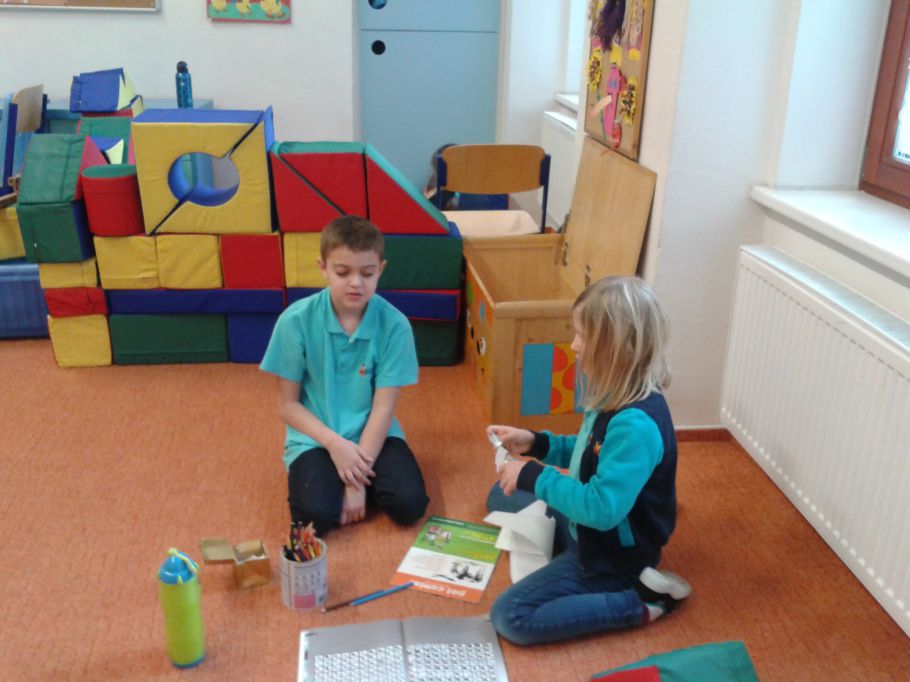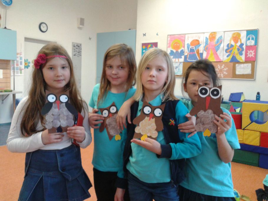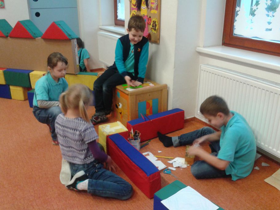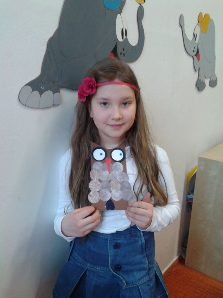 Dnes jsme si přečetli příběh o tvrdohlavém koníkovi Hnědovláskovi. Chlapci si postavili domečky z molitanových kostek a děvčata vyráběla sovičky z tvrdého papíru. Moc se nám povedly. Venku jsme si zaběhali v hale s ostatními družinami, zahráli si fotbal a nohejbal.