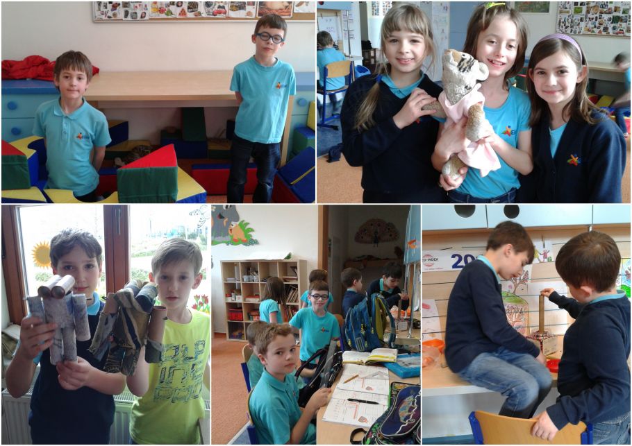 Korálkování se nám znovu zalíbilo a tak vyrábíme zvířátka, srdíčka a jiné minecraftové postavičky. Venku jsme vypustili trochu energie a začalo pršet. V družině jsme napsali úkoly a uklízeli.