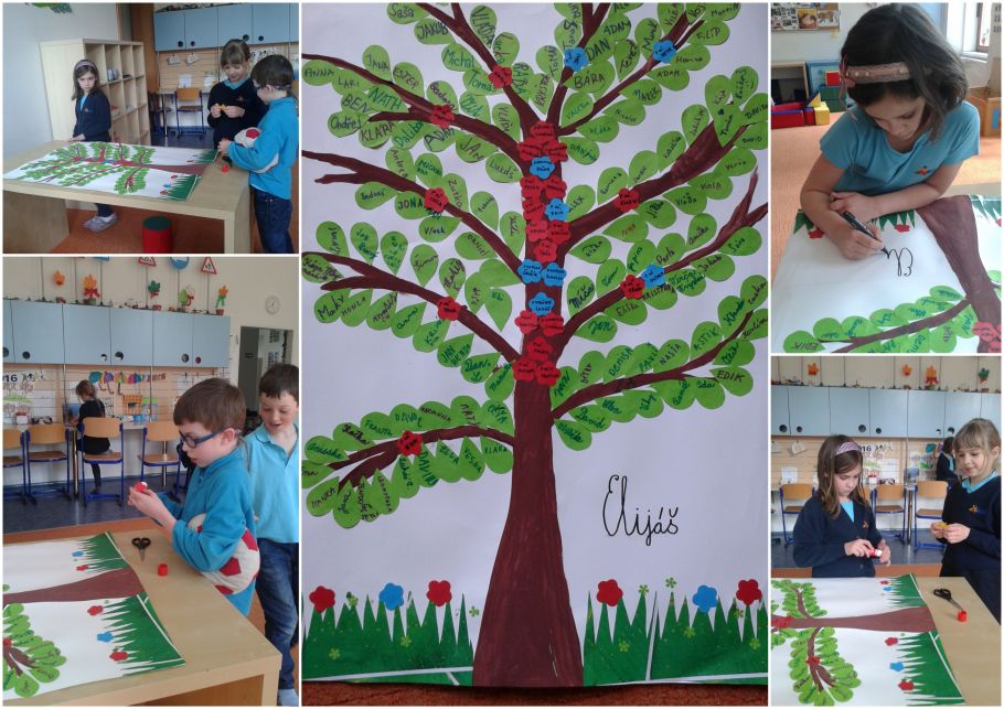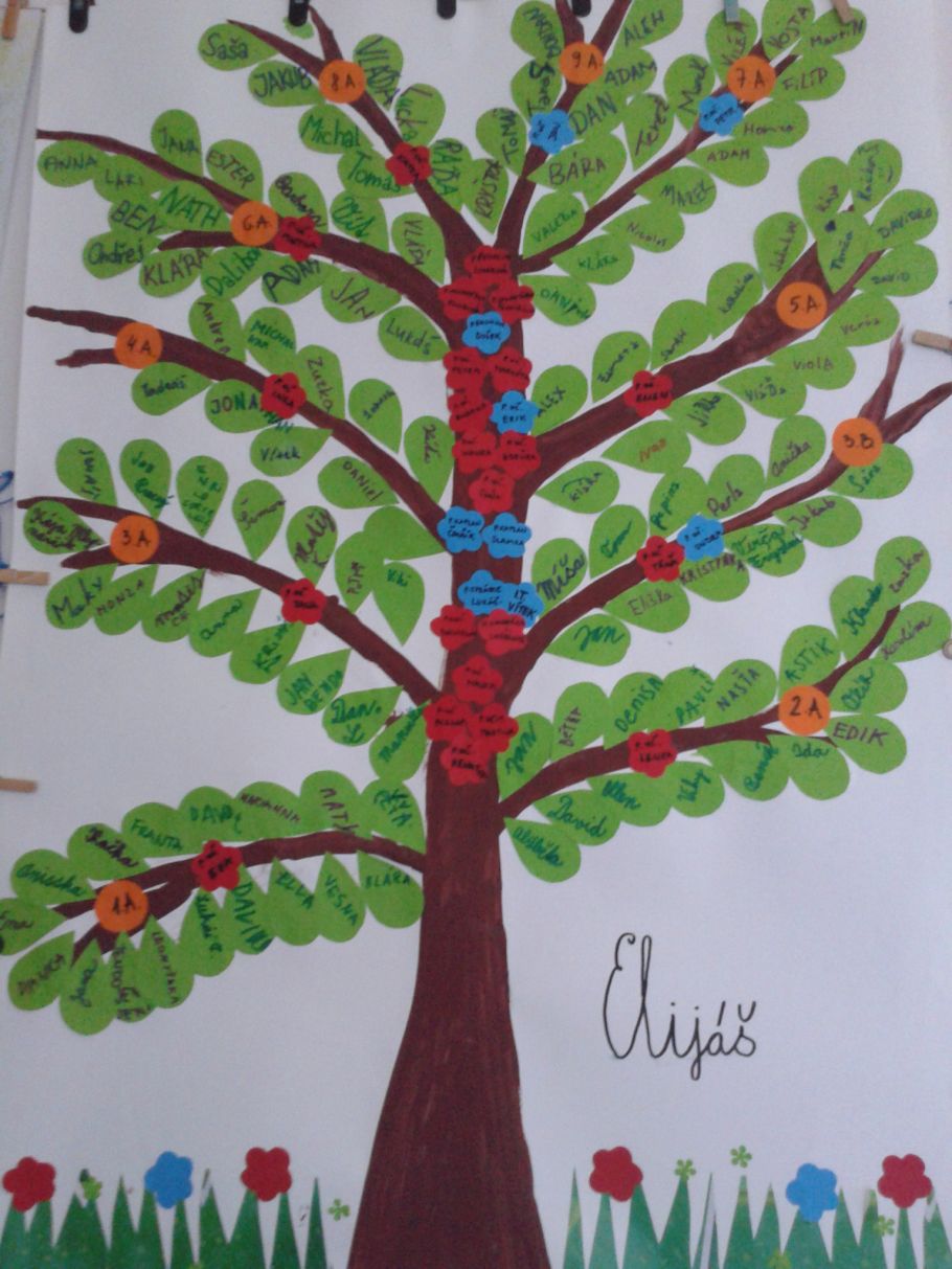 Představujeme Vám strom Elijáš, na kterém jsme pracovali několik dní. Chtěli jsme stvárnit naší školu v obrazu a myslím, že se nám to s dětmi povedlo. Museli jsme hodně stříhat, psát, malovat a lepit. Moc se  nám líbí.