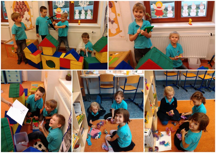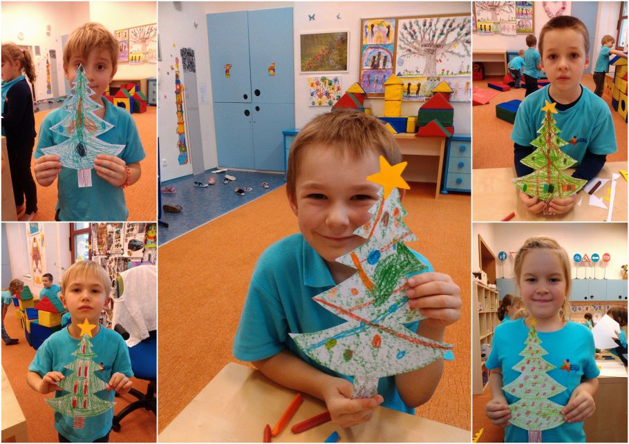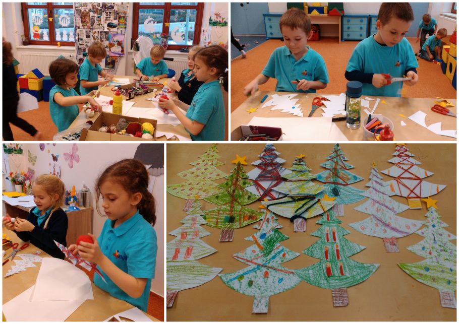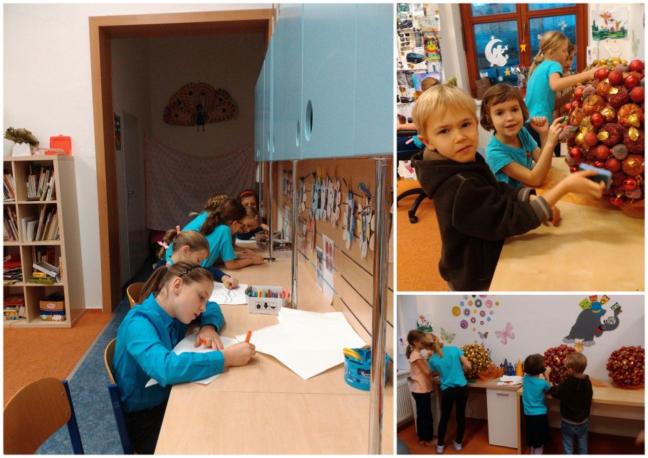 Dnešní ráno jsme v družině čistili a dolepovali koule, abychom mohli vyzdobit naši krásnou školu. Na okna do jídelny jsme nalepili naše včera vyrobené adventní věnce a v družině jsme malovali a lepili stromečky. U toho jsme si hráli s koníčky, malovali jsme, nebo jsme stavěli domečky a bydleli v nich. Z kroužků proběhli sportovní hry a pro ostatní fotbal a honěná na hřišti. Nakonec jsme se dívali na dokončení včerejší pohádky V hlavě.