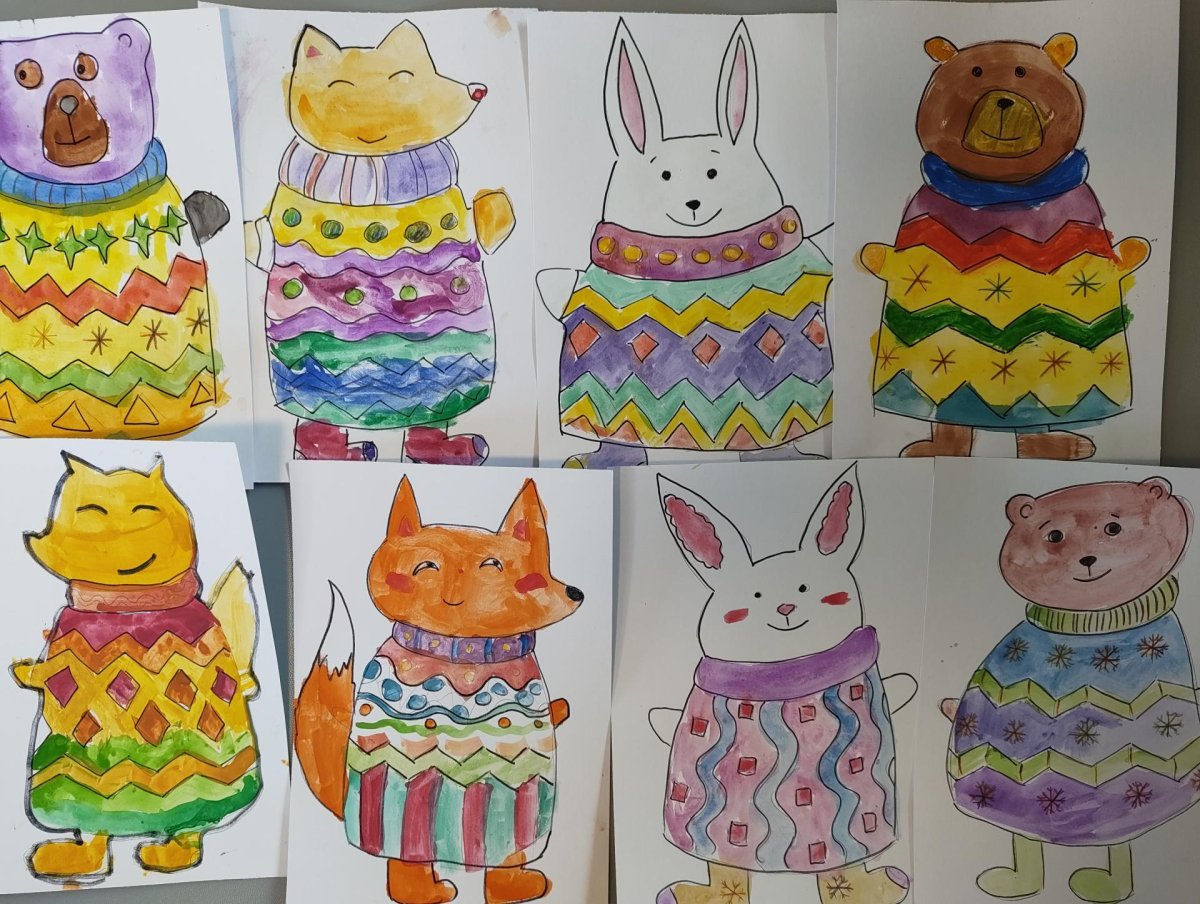 Každé zvířátko obléklo teplý svetr a každý svetr vypráví jiný příběh.