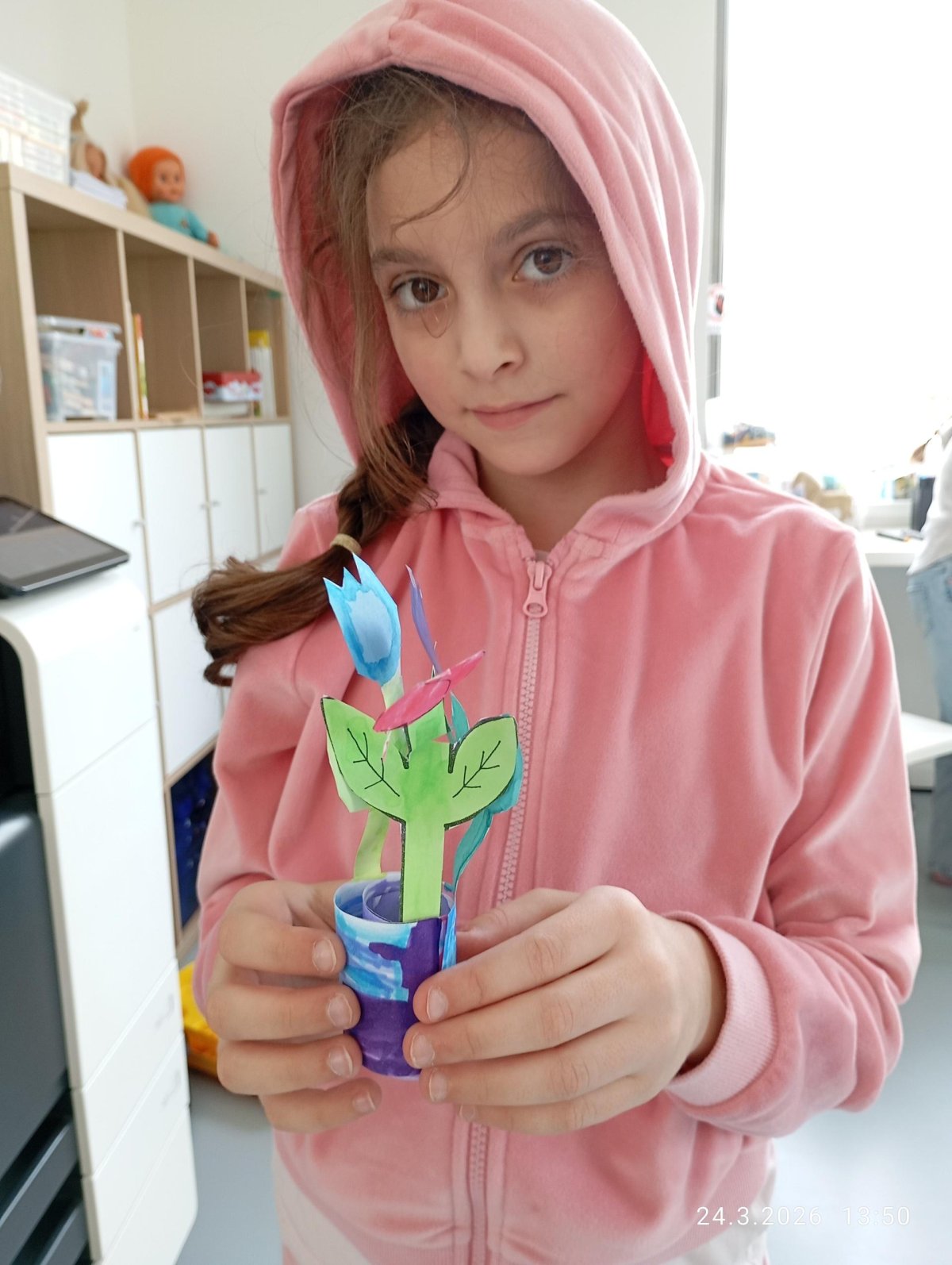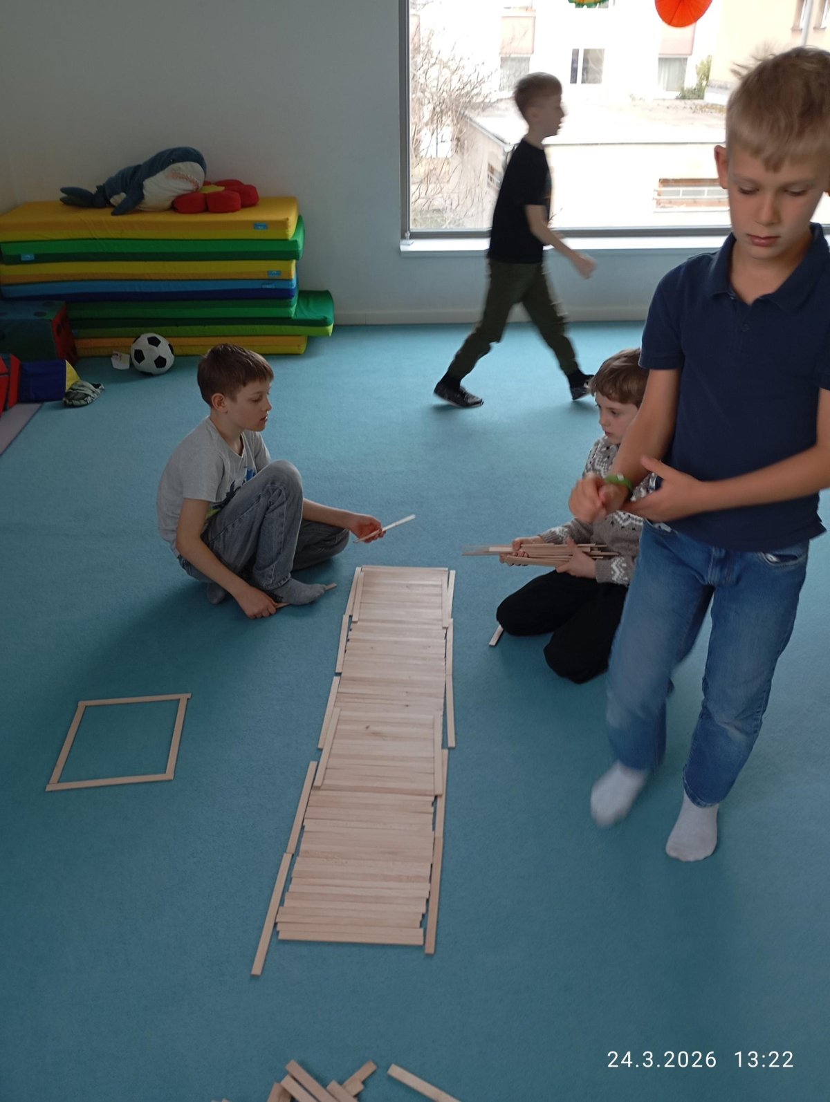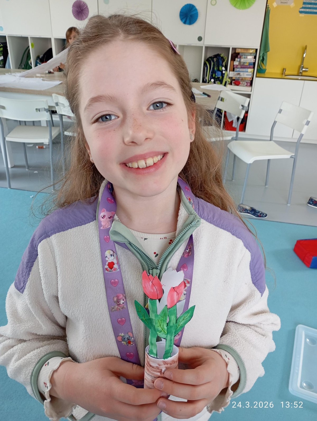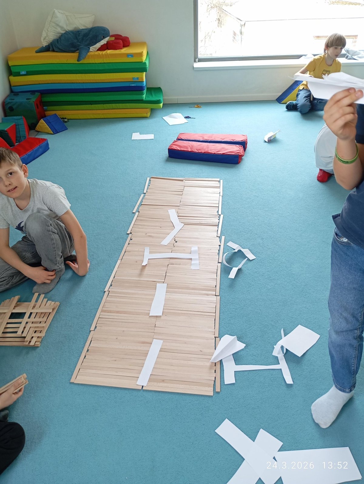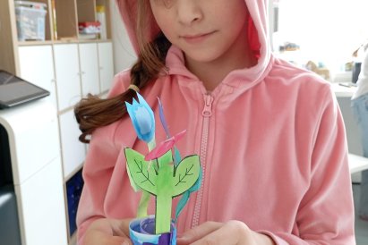 Dneska jsme po obědě poslouchali relaxační hudbu, děti při tom vybarvovaly tulipánky a pěkně si je slepily do 3D kytičky. Kluci si poskládali vlaštovky a venku se pak předháněli, komu dál poletí.Taky si postavili letiště z dřívek. Venku bylo krásně a děti se pěkně vyběhaly.