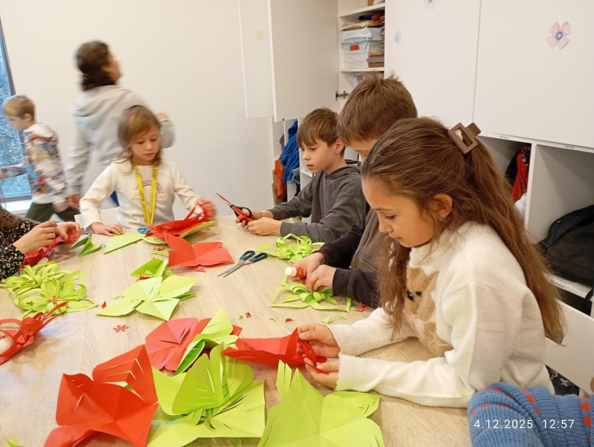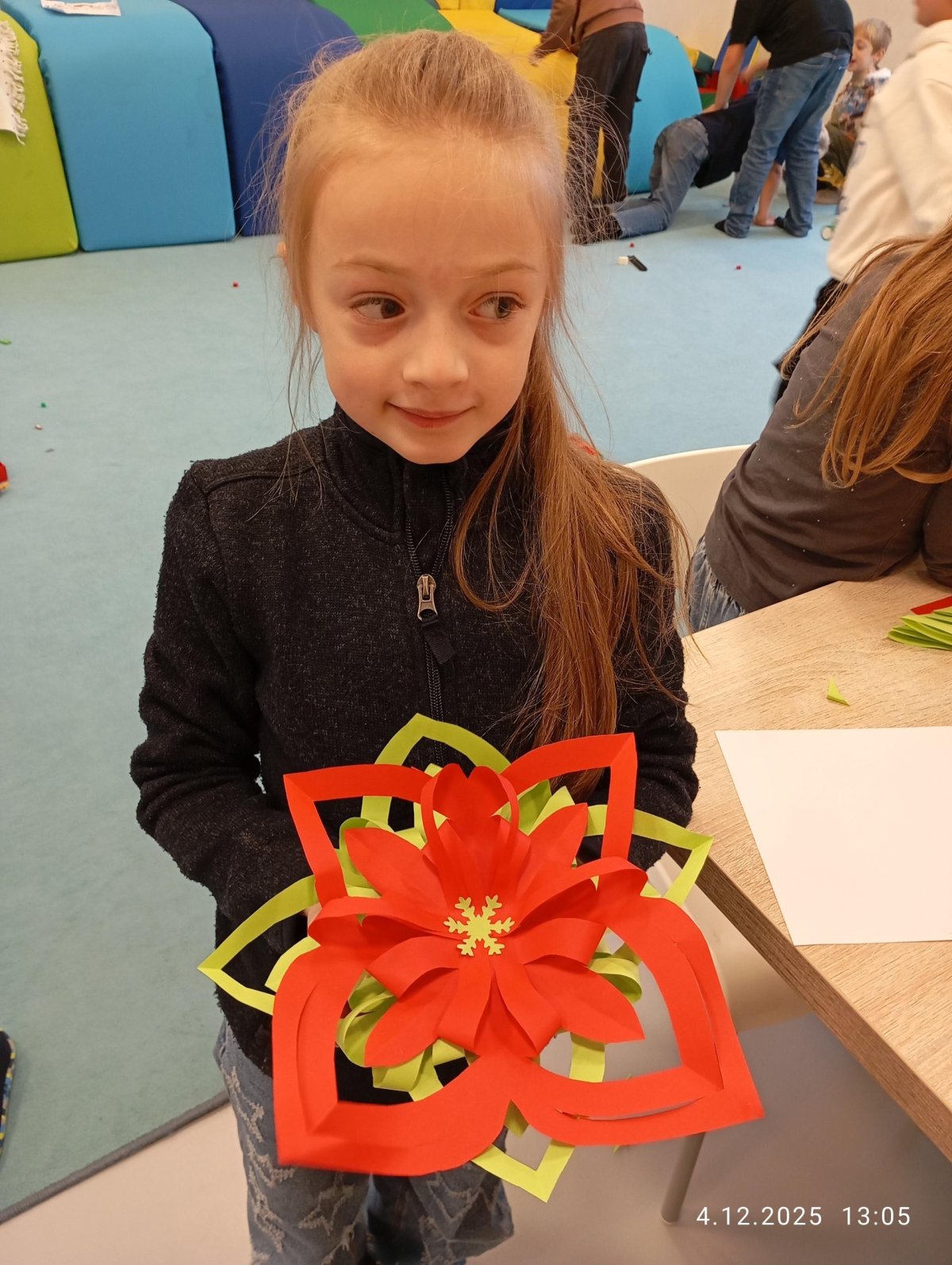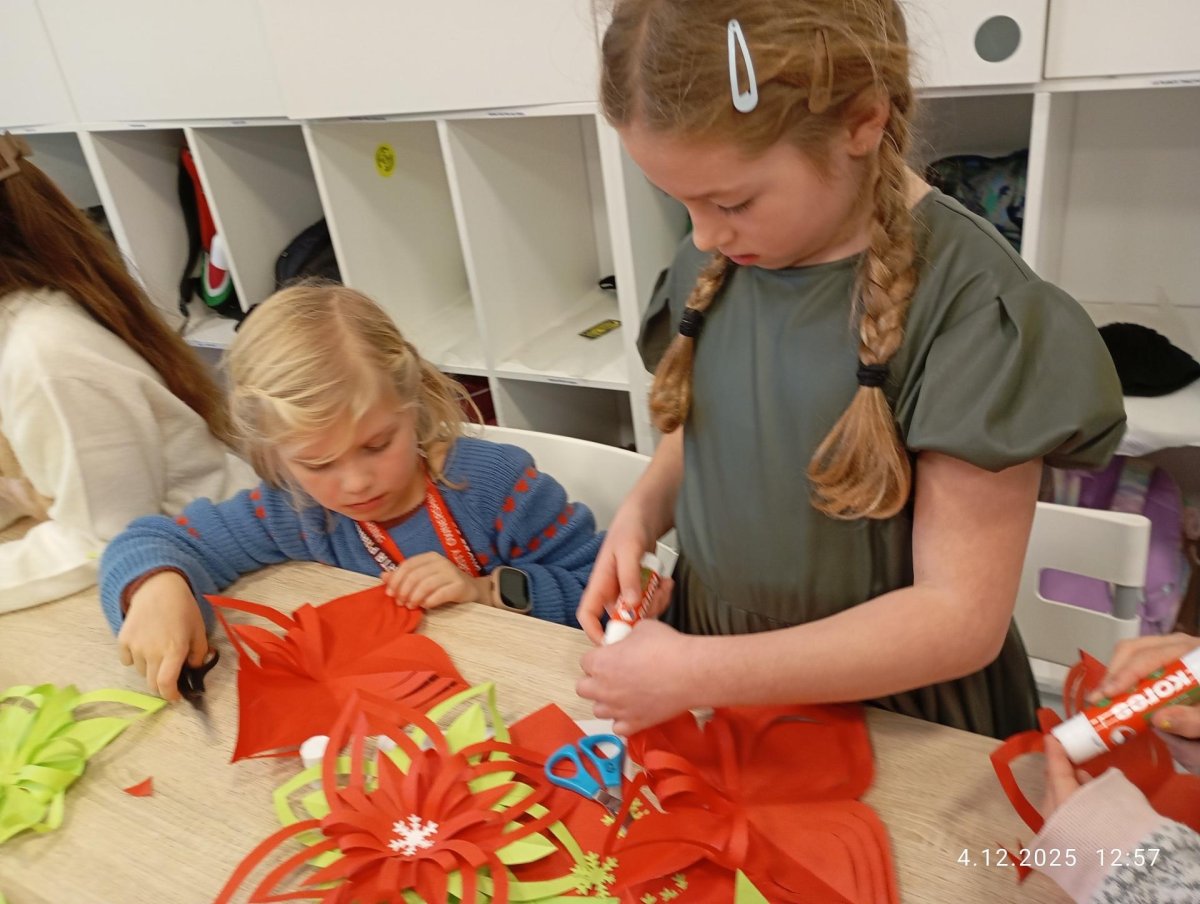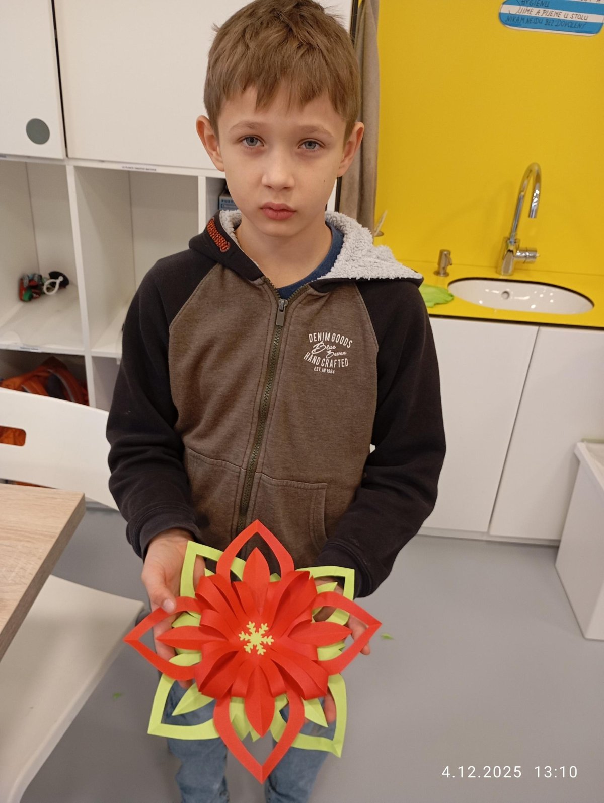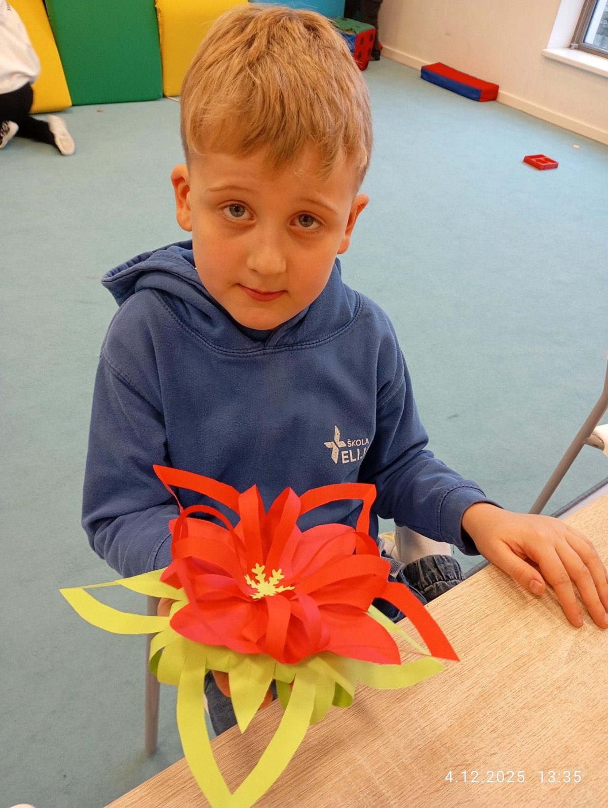 Dnes děti výskaly radostí, jen vešly do třídy ani nepotřebovaly hledat v kapsičkách našeho vánočníhosoba. Všichni se s chutí chopily barevných papírů a nůžek a pustili se s chutí do práce. Za chvíli tu byly krásné vánoční hvězdy. Pár odpůrců tvoření se zabydlelo v domečkách a někteří si stavěly z lega.