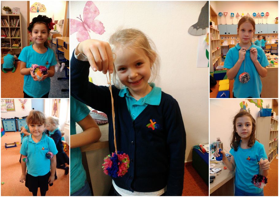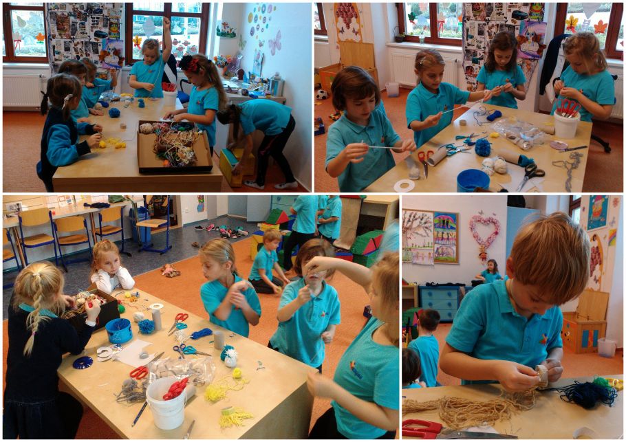 Práce s vlnou se dětem natolik zalíbila, že chtějí denně vyrábět bambule a bambule. Dnes jsme se posunuli trochu dále. Esterka Sóradová nám přinesla svůj nápad na vlněné čepičky. Začalo střihání, vázání a nakonec byla z toho krásná čepička.