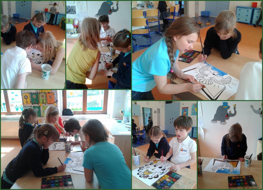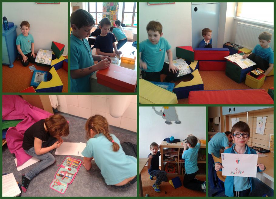 V družině jsme ještě trošku malovali obrázky k písničkám, psali úkoly a hráli si.