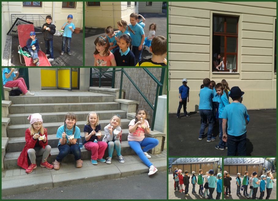 Dnes bylo krásné a sluneční odpoledne, které děti strávili na tenisu, hřišti a na dvoře naší školy. Spestřením pro nás všechny byla zmrzlina od pani kuchařky, kterou nám podávala z okna. Děti poslušně čekaly v řadě na vanilkovou nebo citrónovou pochoutku. Bylo to moc milé a dobré.