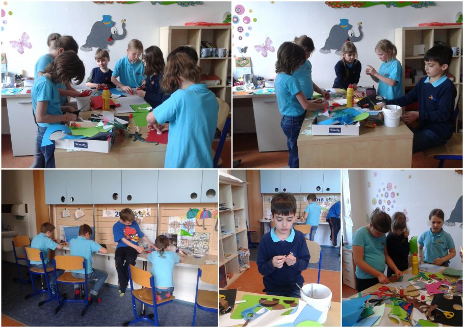 Dnešní den byl hodně tvořivý. Vyráběli jsme zvířátka z koleček. Děti byly moc šikovné. Jejich fantazie se naplno rozvinula a já jsem měla radost, že takové velké množství dětí se zapojilo. Podívejte se sami. Máme tady čapí rodinku, lachtana, zajíčka, medvěda či slona. Nechybí ani myška, zajíček, želva, krab, sova, delfín nebo kočka. Vzalo nám to hodně času, ale stálo to za to.