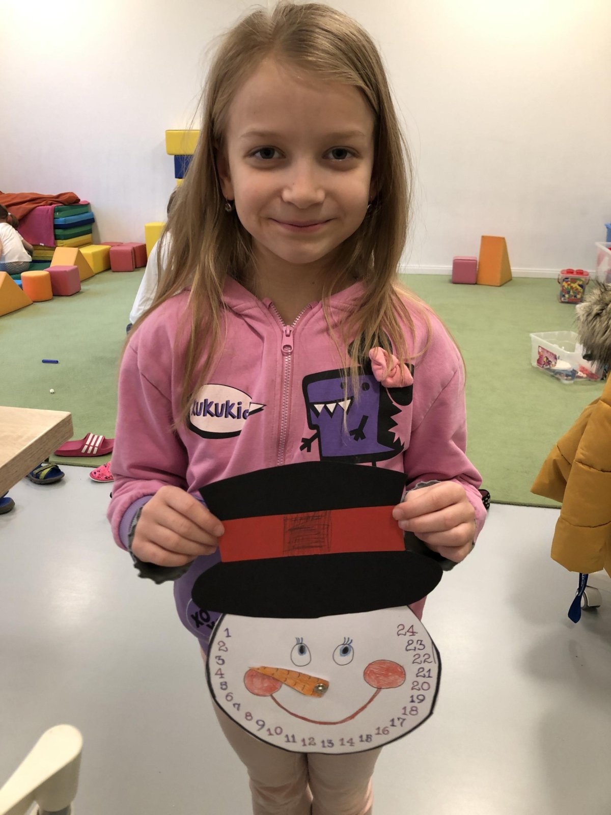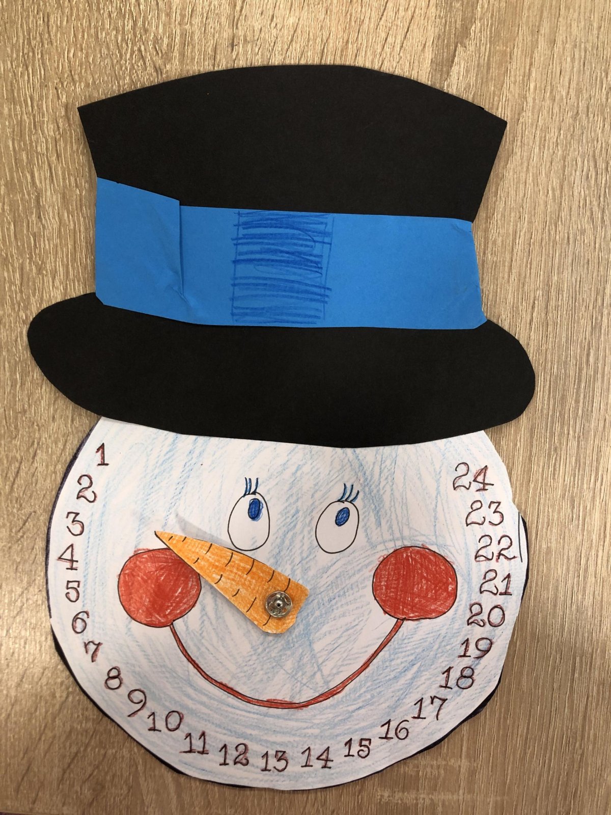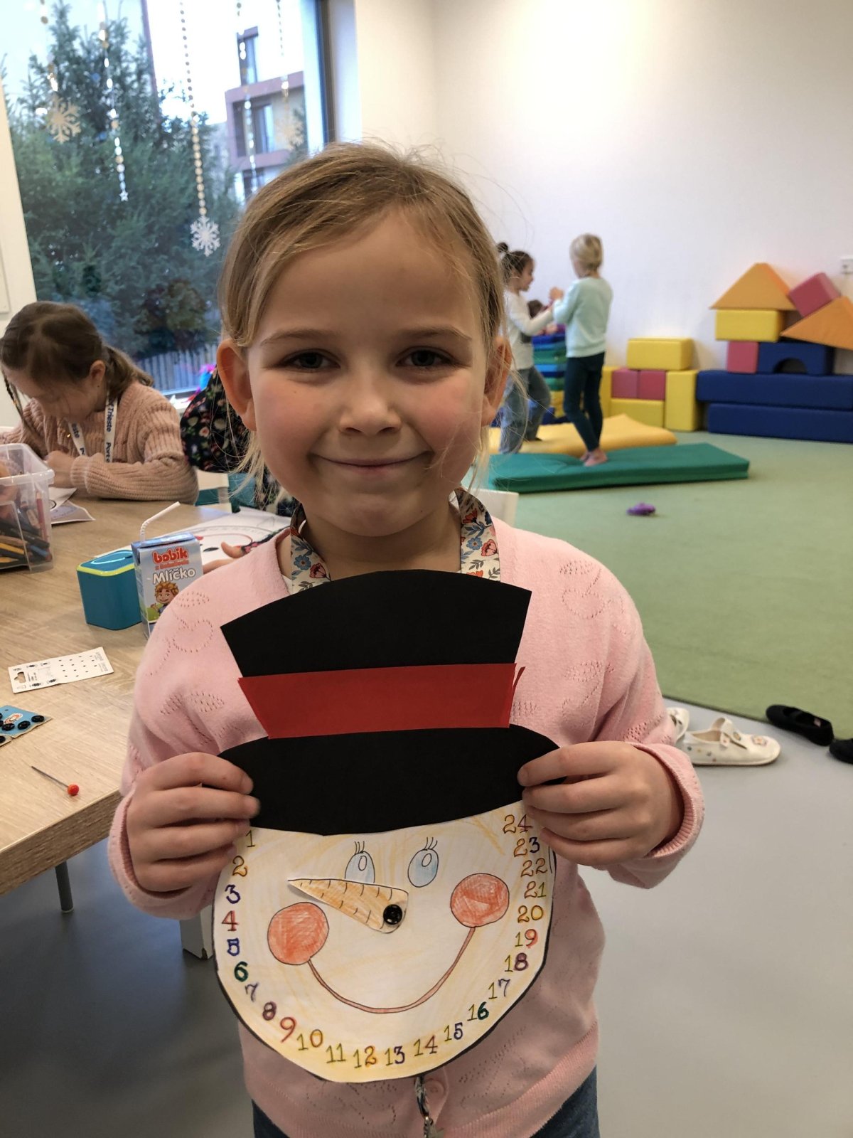 Dnes jsme si ve družině vyrobili vlastní adventní kalendář. Nejdříve jsme si vybarvili sněhuláka i jeho mrkvičkový nos, vystřihli klobouk a nakonec jsme vše spojili pomocí spony. Už se těšíme, až budeme každý den posouvat ručičku a společně odpočítávat dny do Vánoc. Děti práce moc bavila a své krásné kalendáře si s radostí odnesly domů, aby si s vámi mohly užít kouzlo adventního čekání.